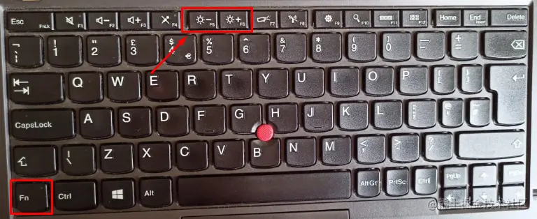 在我的键盘上,我有 "F5"和 "F6"来控制Windows的亮度。在按住功能键**"Fn "的同时,我可以按 "F5"**功能键来降低亮度,按 "F6 "来增加亮度。