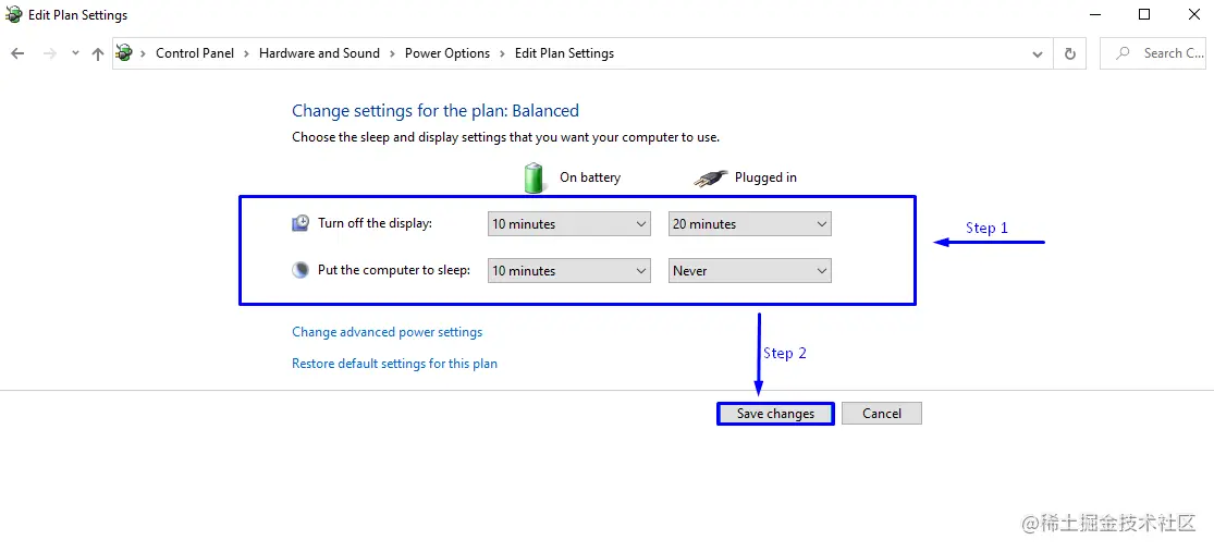 **第5步:**根据你的电脑是在充电还是靠电池电源运行,你可以调整亮度。在不插电时,设置一个较低的亮度,以节省电池寿命。为此,定制你的电源计划设置,为你的系统保持一个平衡的计划。
