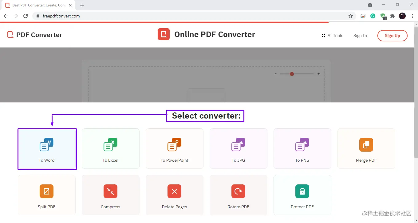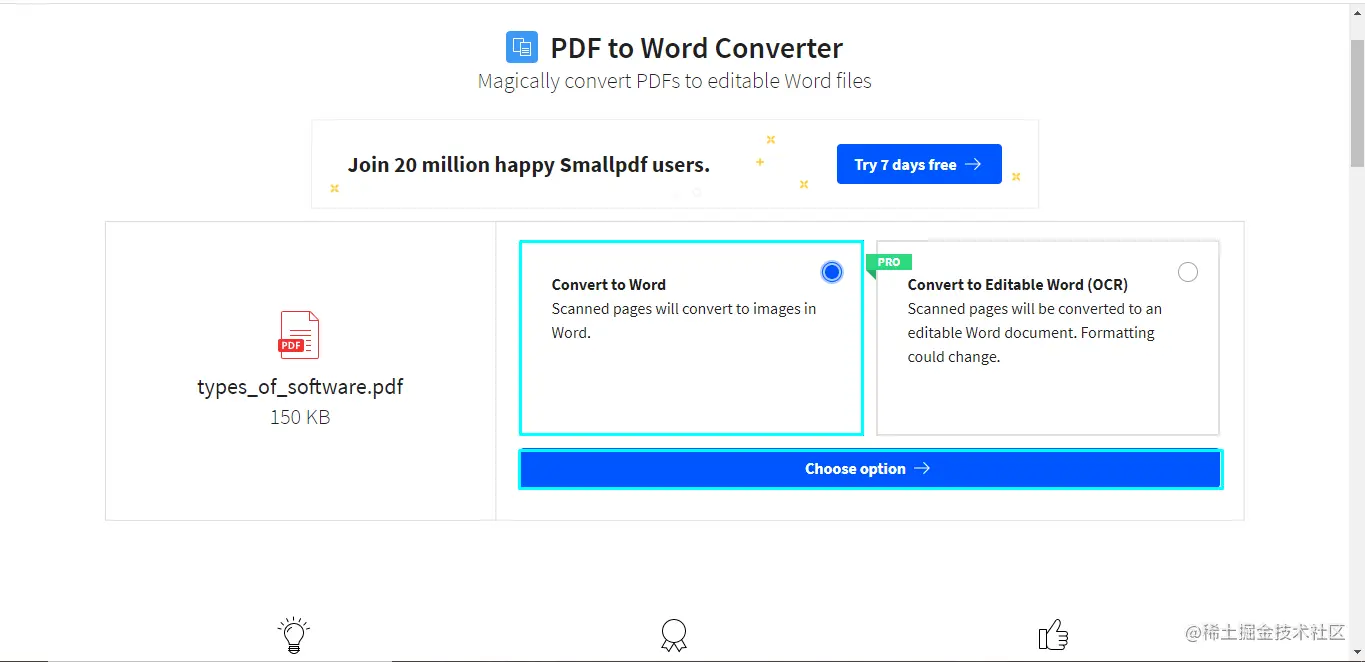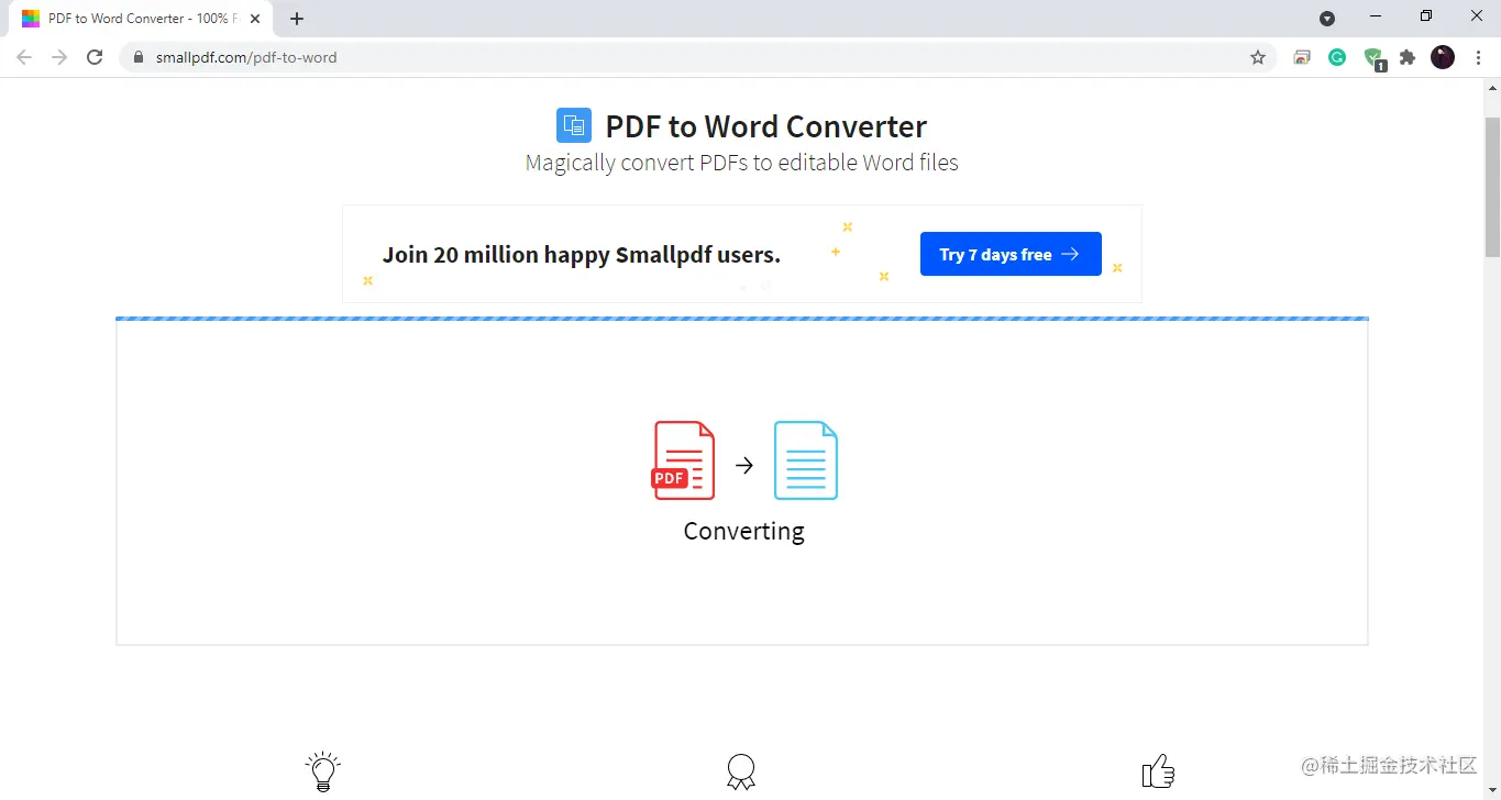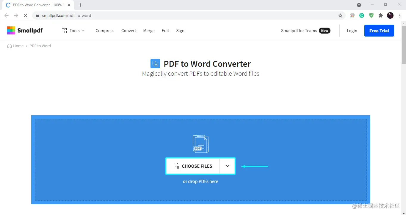 在下面的例子中,我们使用了"Smallpdf,"是最好的在线PDF到Word转换器之一。