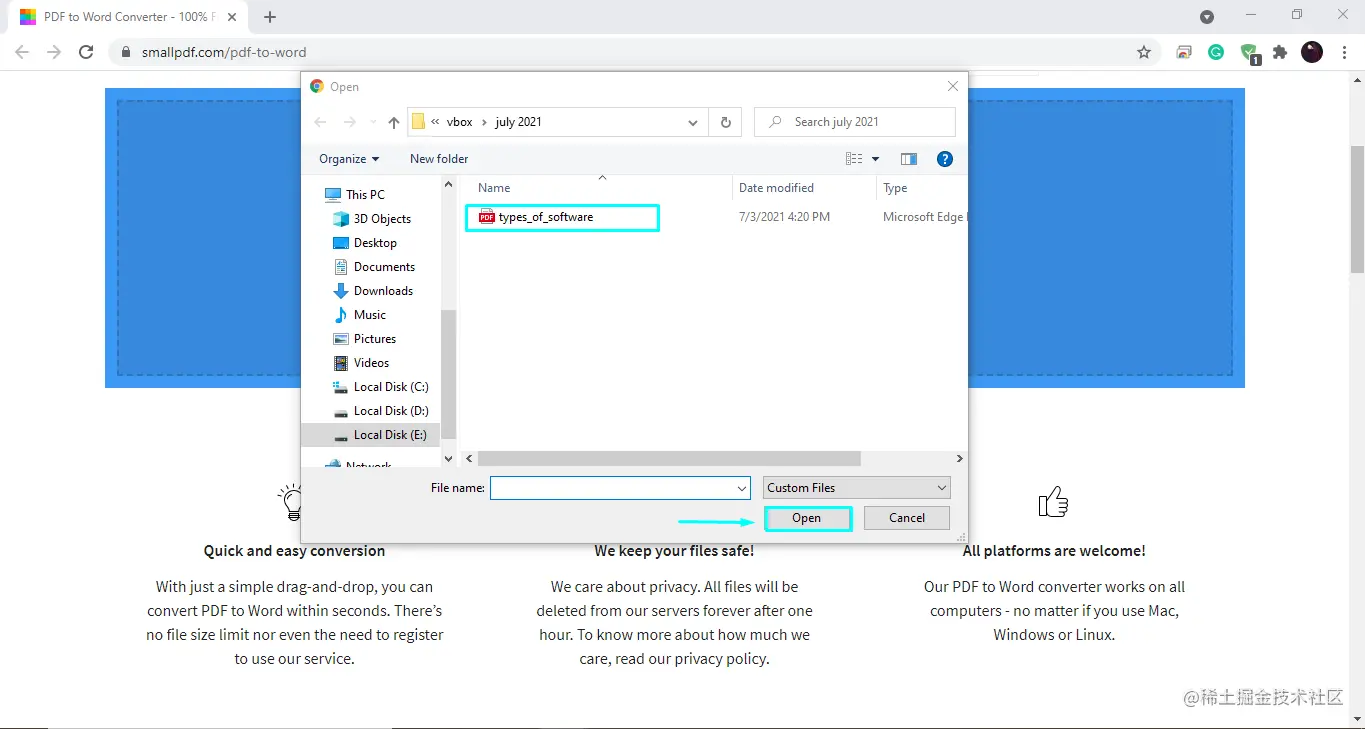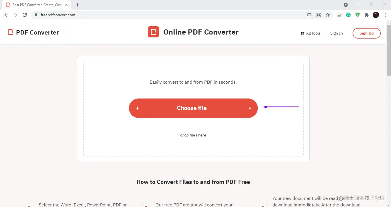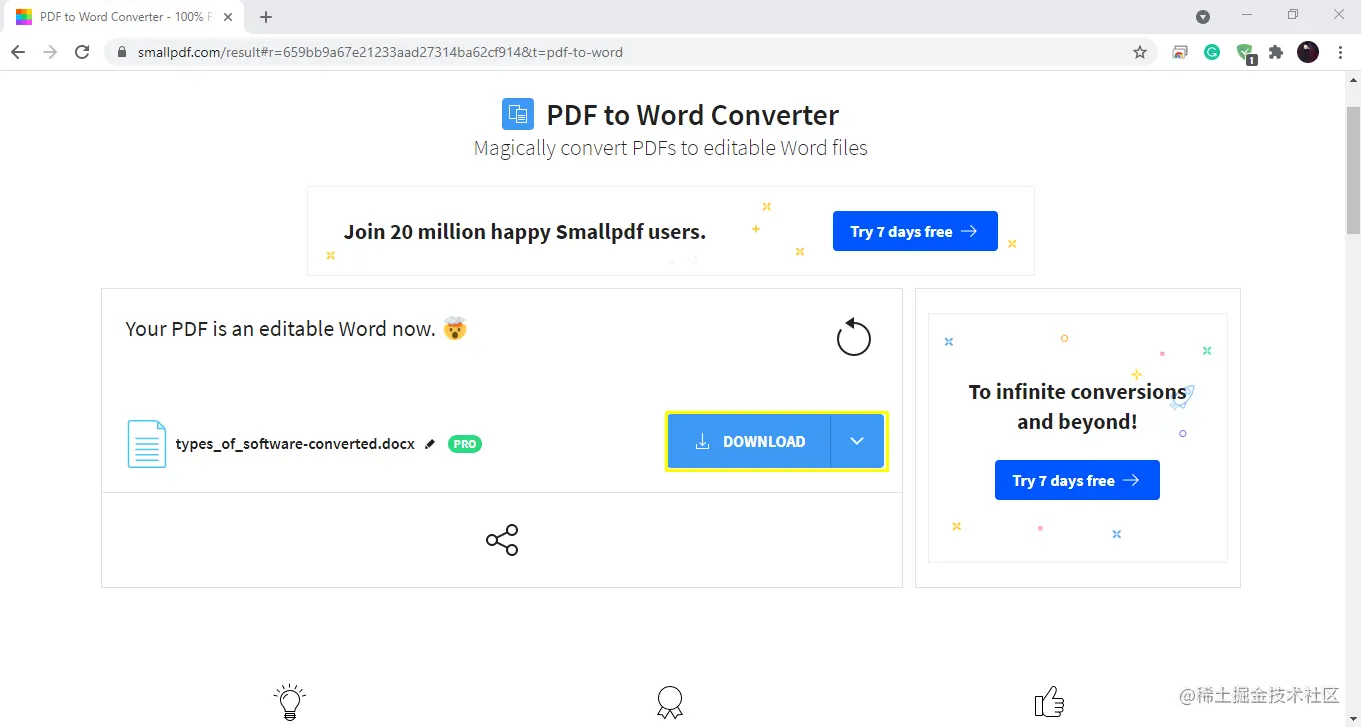 在下面的例子中,我们使用了"Smallpdf,"是最好的在线PDF到Word转换器之一。