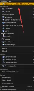 重启工程,可以在 Window 菜单栏下面看到 Enable Menu Editing 复选框,勾上它,就会在菜单栏、工具栏、右键菜单等等上显示 Editor Menu