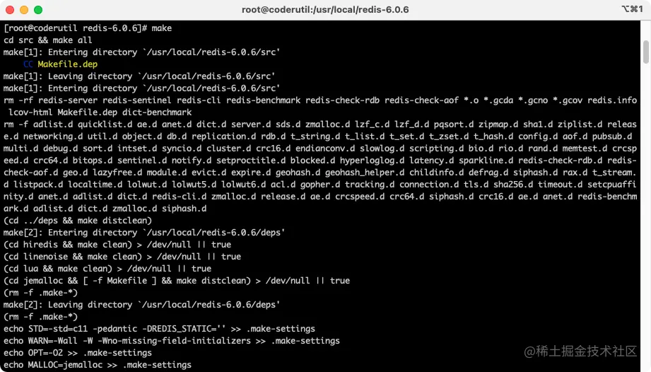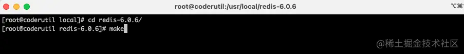 - cd切换到redis解压目录下,输入make命令,执行编译