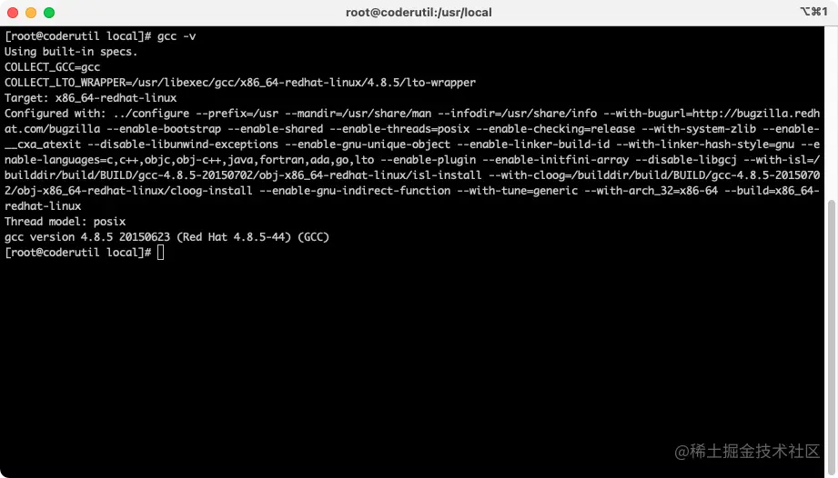 输入如下命令查看gcc的版本: