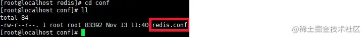 (2)进入conf目录,输入如下命令查看redis.conf是否复制成功