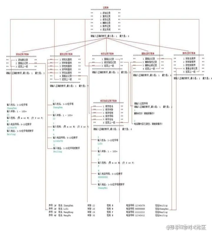 该项目是用于日常生活中记录联系人信息的一款智能小工具。实现了对联系人的姓名、年龄、性别、电话号码、住址的添加及修改、查找、删除、排序等功能。该项目是以 Windows 控制台为运行平台,所有的操作都应在控制台上进行。