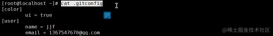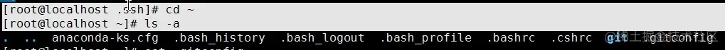 注:.gitconfig 是隐藏的目录,所以需要通过 ls -a 来查看否则不会输出。