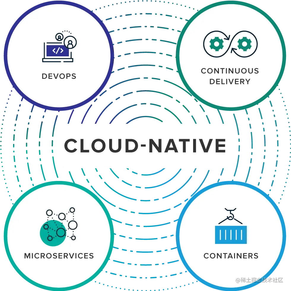 CNCF 建立之后,以云原生为核心打造云原生生态体系,初期对云原生的定义包含以下三个点: