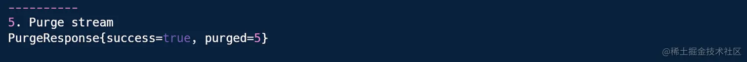 System.out.println("----------\n5. Purge stream");
