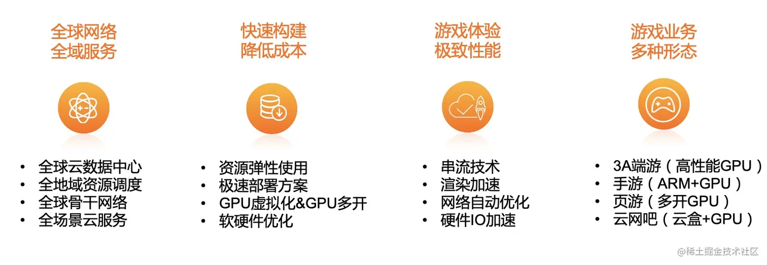 对于云端算力来讲,阿里云解决了云端渲染、串流以及编解码问题,并通过全系列GPU产品来满足云手游、端游、VR乃至企业级视觉渲染场景的需求。