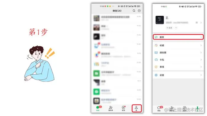 第1步:打开你的微信后,在【我】里面进入“服务”(旧版本微信为“支付”);
