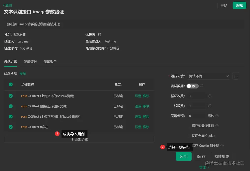 在测试管理tab导入测试用例,生成测试用例并一键运行