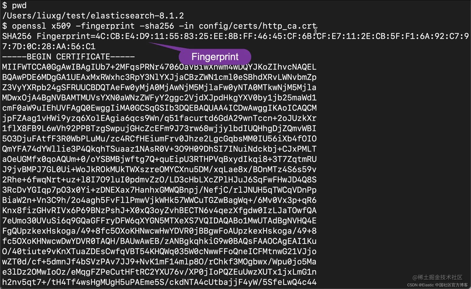 openssl x509 -fingerprint -sha256 -in config/certs/http_ca.crt