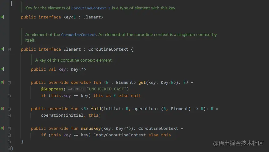 - 协程的上下文,是一个集合。元素类型为 Element:CoroutineContext。