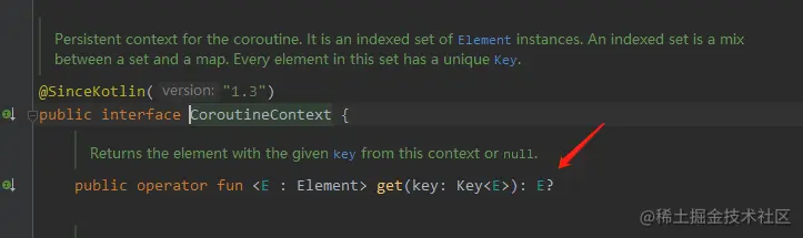 - 具体实现:就是通过调用 CoroutineContext.get() 方法获取指定 Key 所对应的元素。