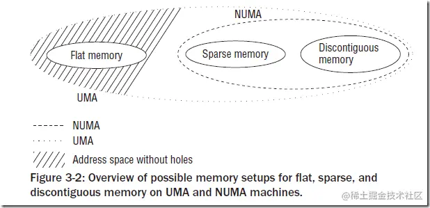 - Flat Memory就是简单的线性组织物理内存,一般没有内存空洞的UMA架构都采用这种配置。对于NUMA模型,一般只能采用后两者,而后两者的区别主要在于:Sparse Memory配置一般认为是试验性的,不是那么稳定,但是有一些新的功能和性能优化,而Discontiguous Memory配置一般认为是稳定的,但不具有内存热插拔之类的新特性。