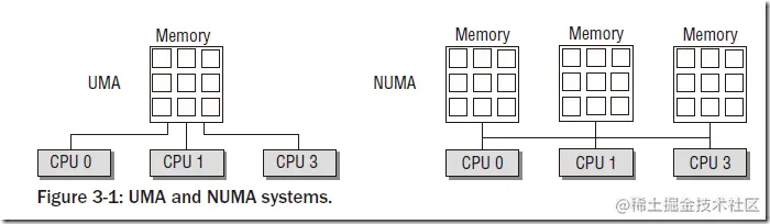 物理内存模型主要分为两种:UMA(Uniform Memory Access)和NUMA(Non-Uniform Memory Access)。