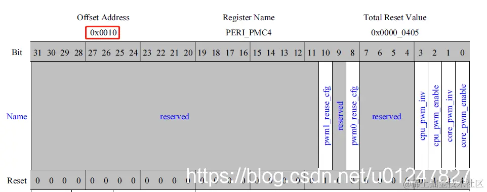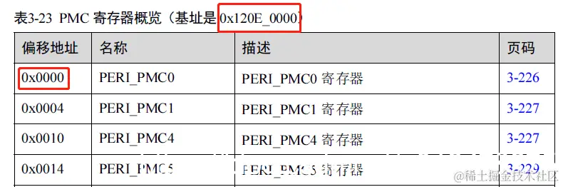 PCM的基地址为0x120E_0000,PERI_PMC4的偏移地址:0x0010