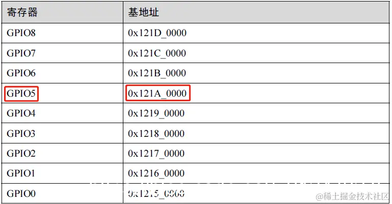 同样的,首先需要找地址,对于GPIO5的基地址为:0x121A_0000;GPIO_DATA 的偏移地址为0x3FC,得到GPIO5_5的寄存器地址为0x121A_03FC,如果你想把GPIO5_5写入值为1时,则需要把BIT5置1;