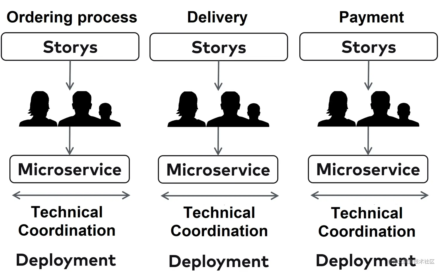 微服务是一种架构方法,但它们也会产生组织影响。传统的组织通常根据技术技能组合来组建团队,如UI团队和后台团队。