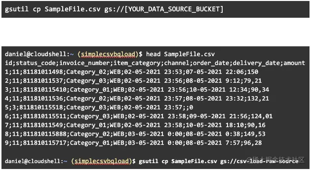 为了测试到目前为止一切都在按预期进行,我们将简单地上传一个CSV文件到gs://[YOUR_DATA_SOURCE_BUCKET],你如何命名这个文件并不重要,只要数据和标题与我们一开始上传的样本文件保持一致。