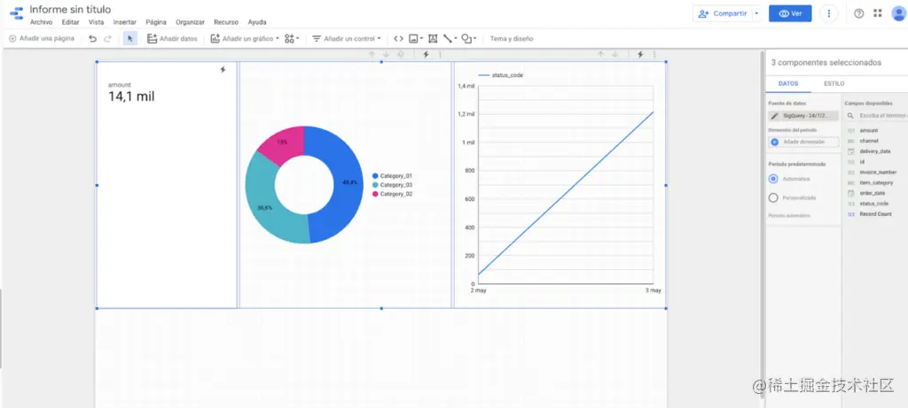 6.在Data Studio中创建一个简单的报告,对BigQuery中的数据进行一些可视化处理。