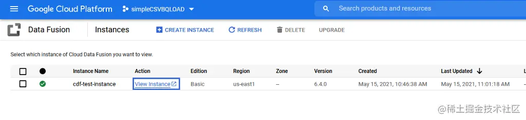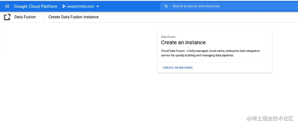 一旦API被启用,在左边的菜单中导航到数据融合,点击创建实例。