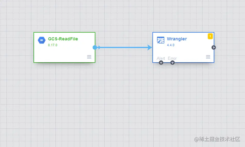 现在,我们需要将读取的CSV文件的输出连接到Wrangler上,如下图所示。然后,悬停在rangler上,点击出现的属性按钮,访问rangler属性。