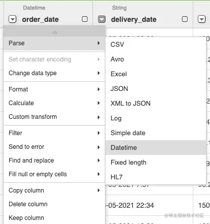 现在,我们将解析order_date字段,以便将其作为Datetime类型正确插入BigQuery中。