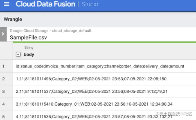 最后,我们将上传一个带有数据子集的样本CSV文件,以便以后在用数据融合构建数据管道时,更容易使用Wrangler得出数据结构和模式。