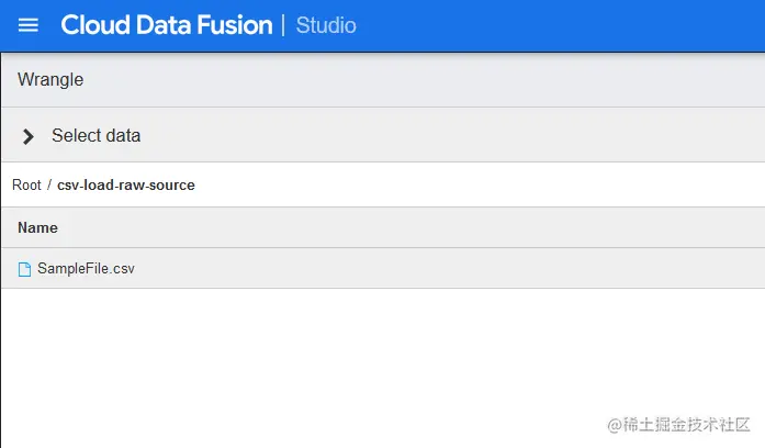 现在是上传SampleFile.csv文件到步骤1中创建的源数据桶的时候了,在打开的GCS浏览器中,导航到[YOUR_DATA_SOURCE_BUCKET]并选择你在步骤1中上传的文件。通过向wrangler提供数据文件的样本,我们可以让wrangler推断出数据结构并直观地执行数据整理任务。