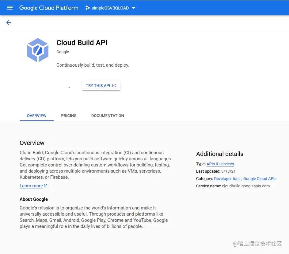 为此,我们将需要首先启用云构建API,如果你还没有这样做,请启用它。