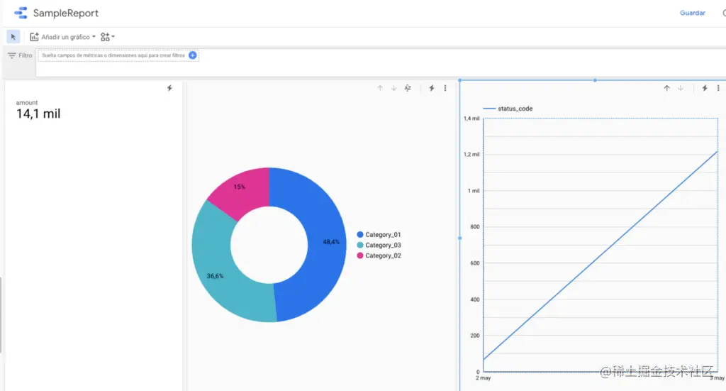 - 在Data Studio中创建一个简单的报告,对BigQuery中的数据进行一些可视化处理。