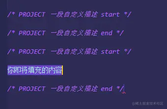 "/* PROJECT 一段自定义描述 start */",