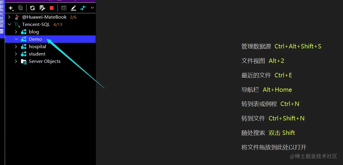 我比较喜欢DataGrip,我就用这个演示了。不过这个的界面就没有Navicat优美了,不过个人感觉功能强大许多。