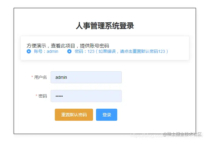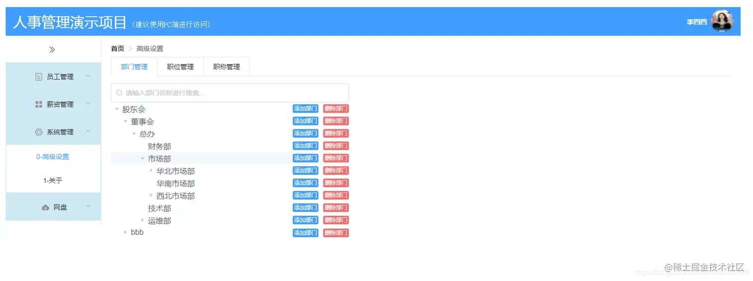 系统是前后端分离的项目,直接启动Springboot应用程序类后,再启动前端工程访问即可。主要实现 了企业的人事管理功能,主要包含员工管理、薪资管理、职位管理、权限管理、网盘文件分享管理等模块。