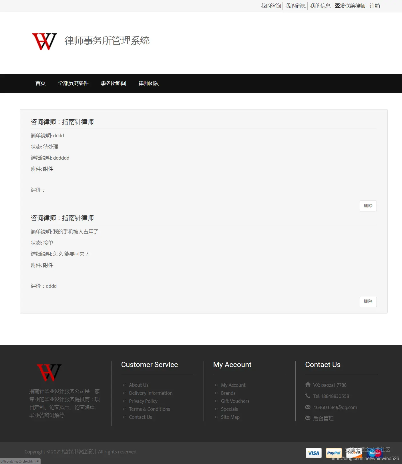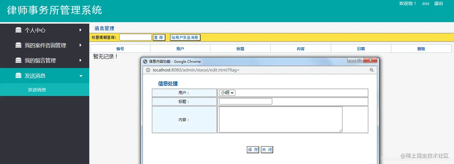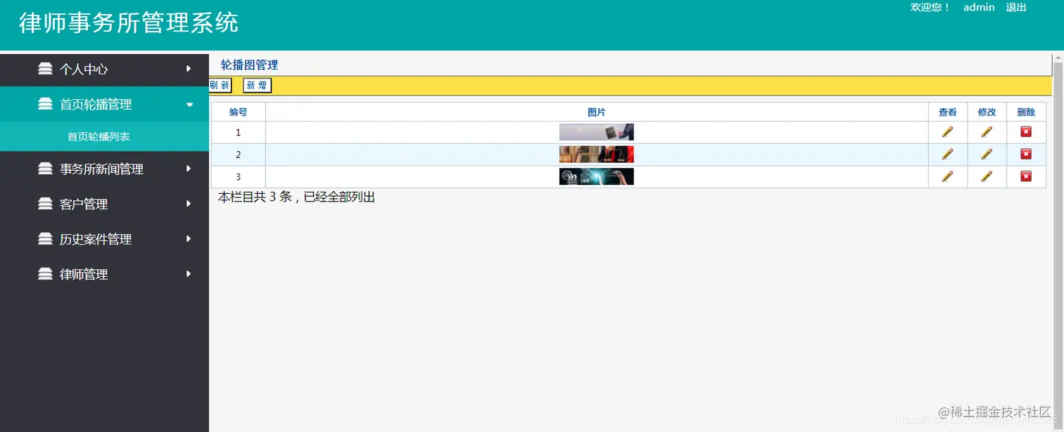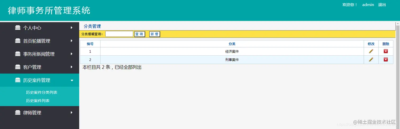 以上是律师事务所管理系统的部分功能展示,本系统功能完整,界面美观,前端和后台都有,适合做毕业设计使用 。