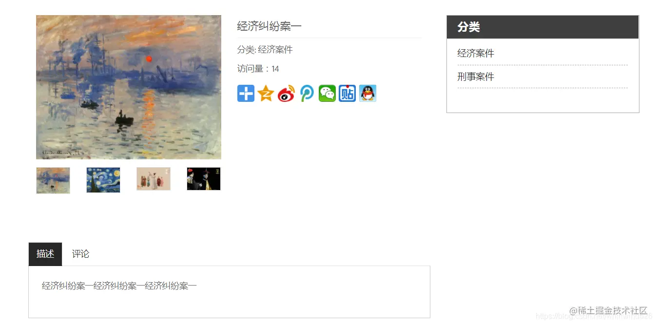 案件详情展示:可以在评论处进行评论并显示