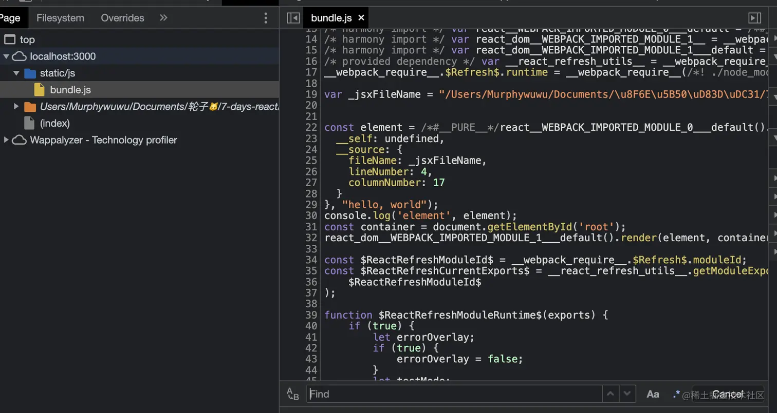 可以看到,在左侧边栏有一个static/js文件夹,打开这个文件夹,可以看到bundle.js文件,如图