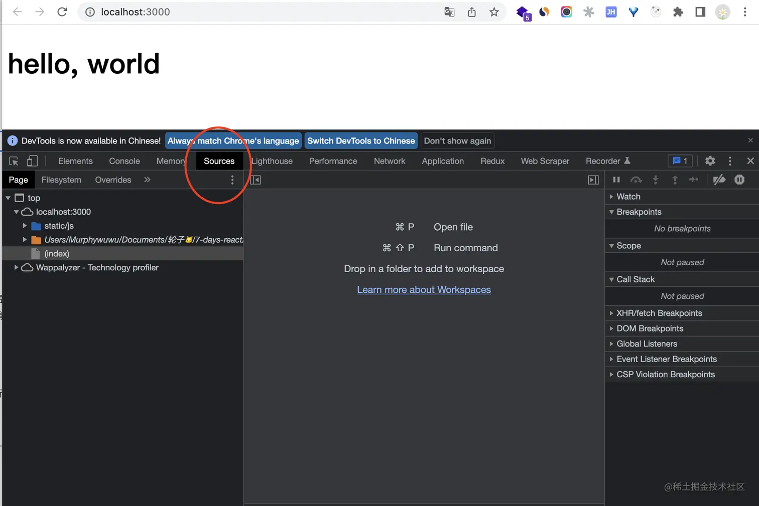 现在,我们打开浏览器的控制台,切换到Sources面板,如下所示: