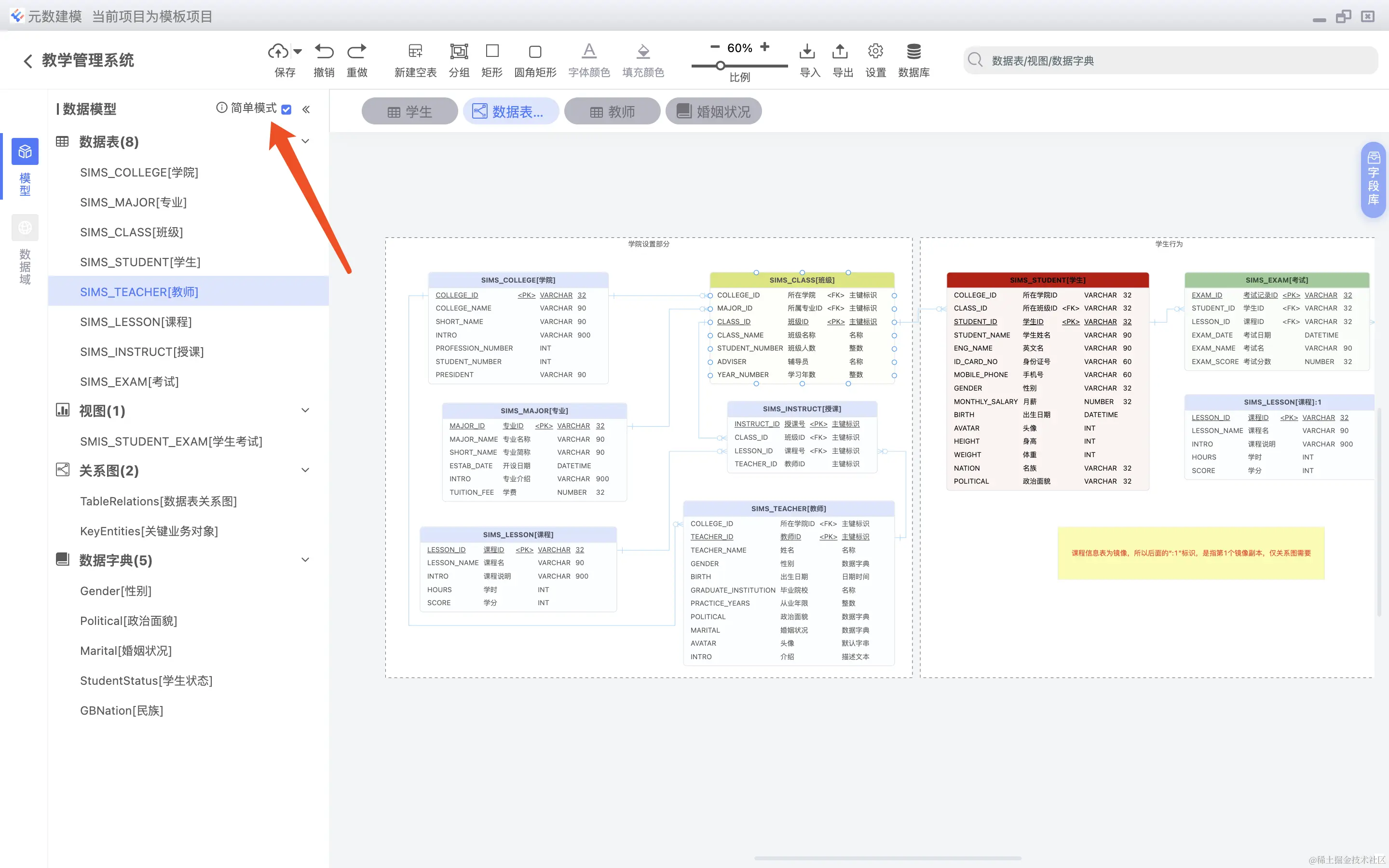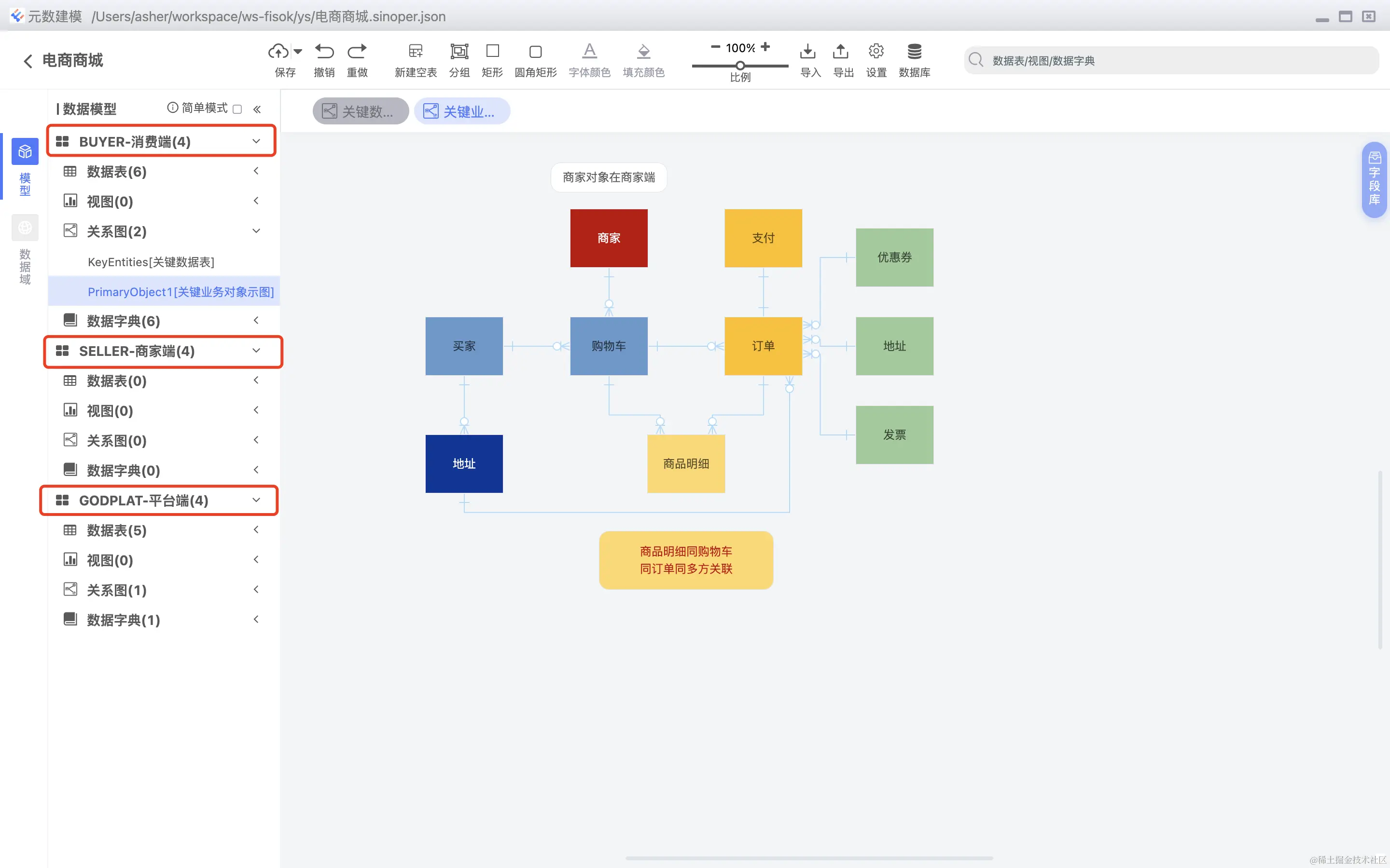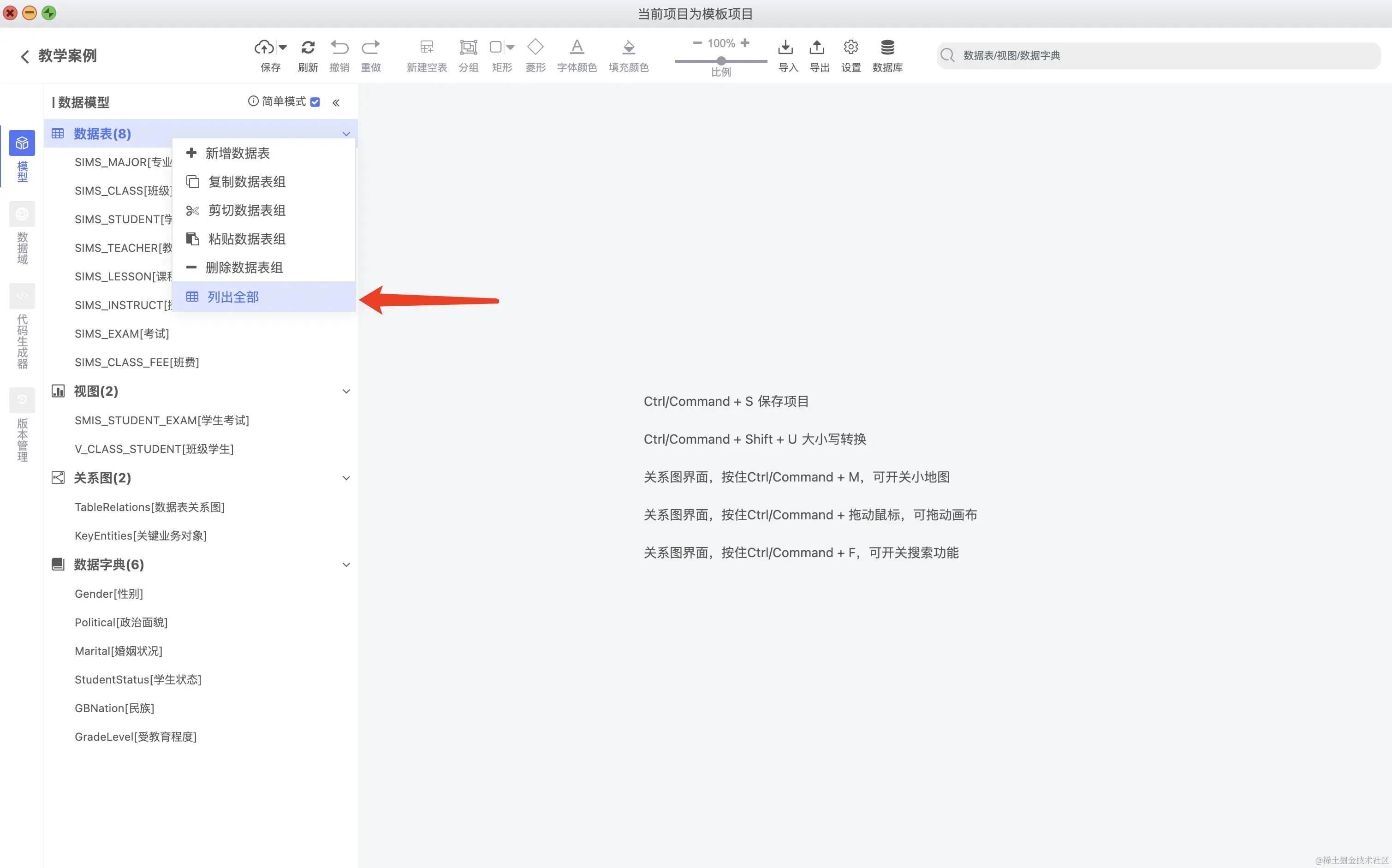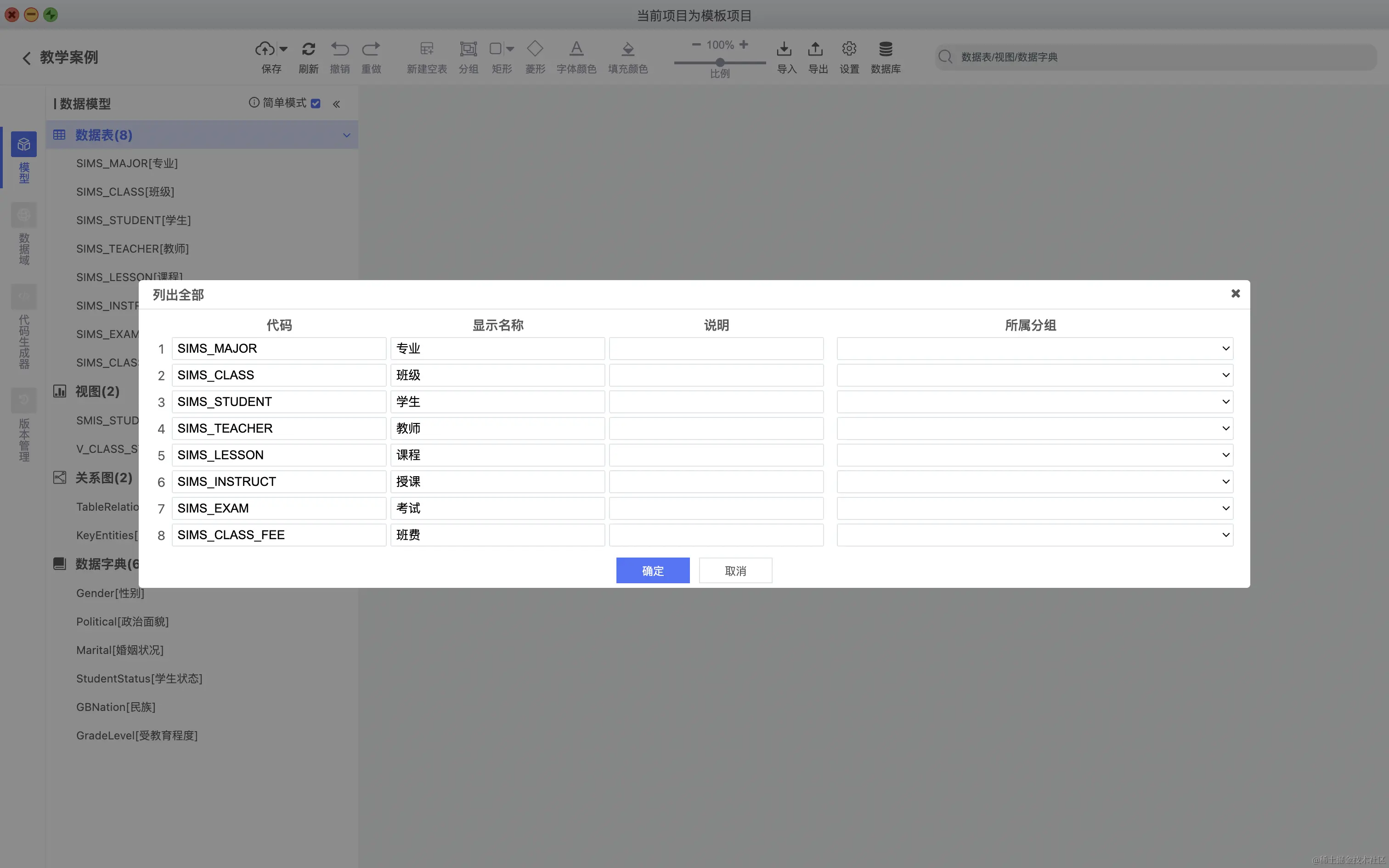 简单项目,不需要分模块,直接分为数据表,视图,关系图,数据字典即可,复杂项目需要折分为一个一个独立的模块,系统对这两种形式均给予支持。