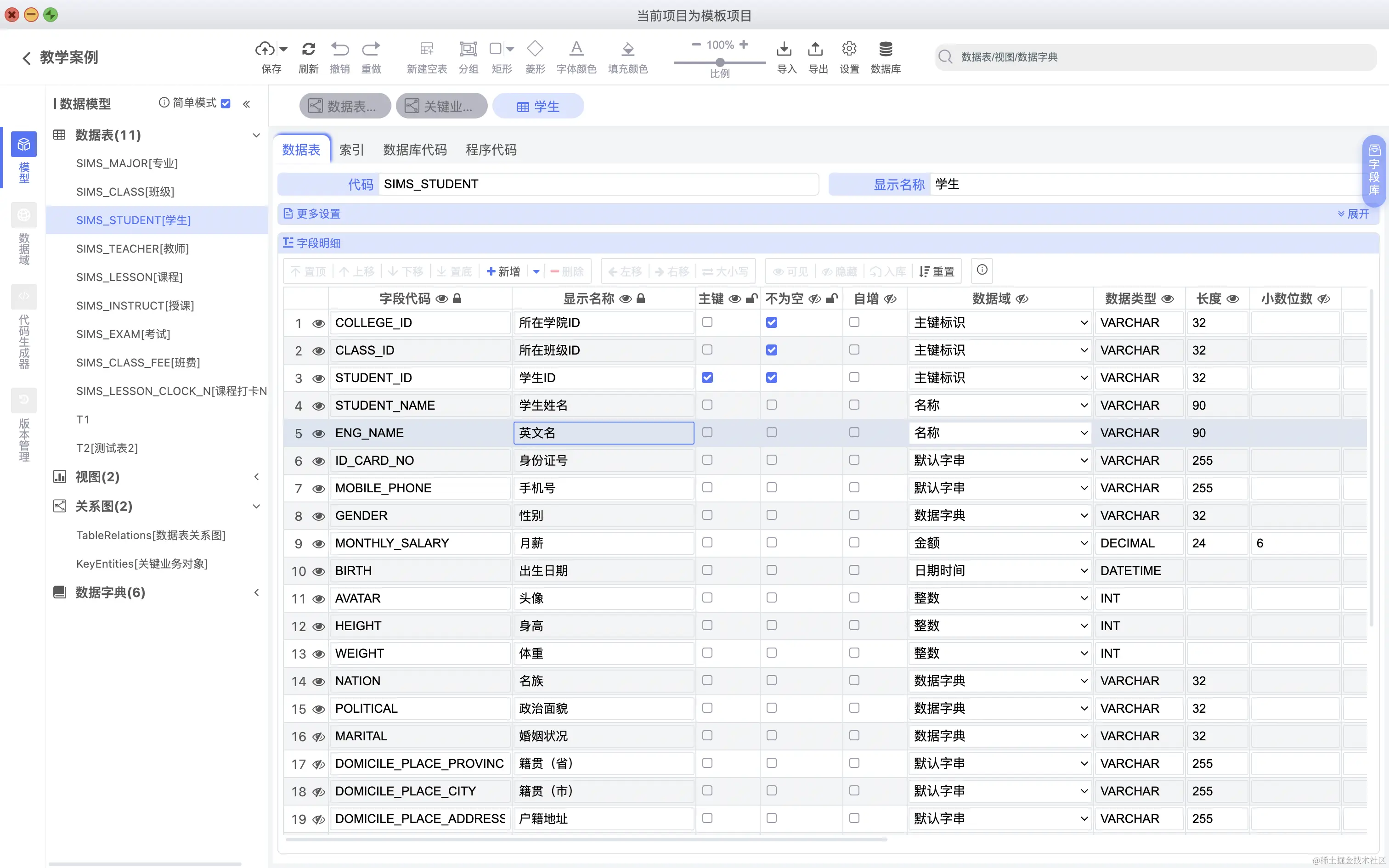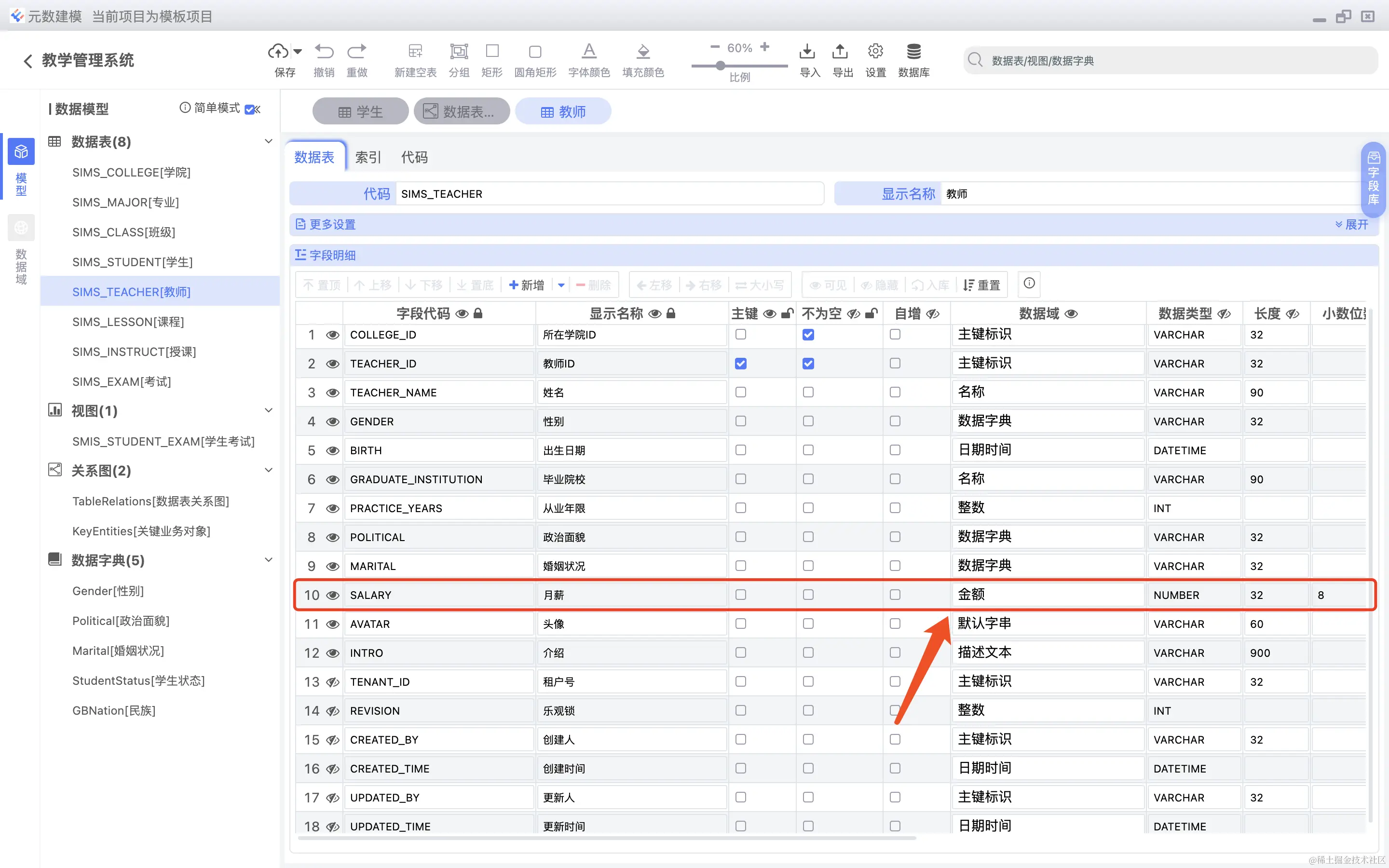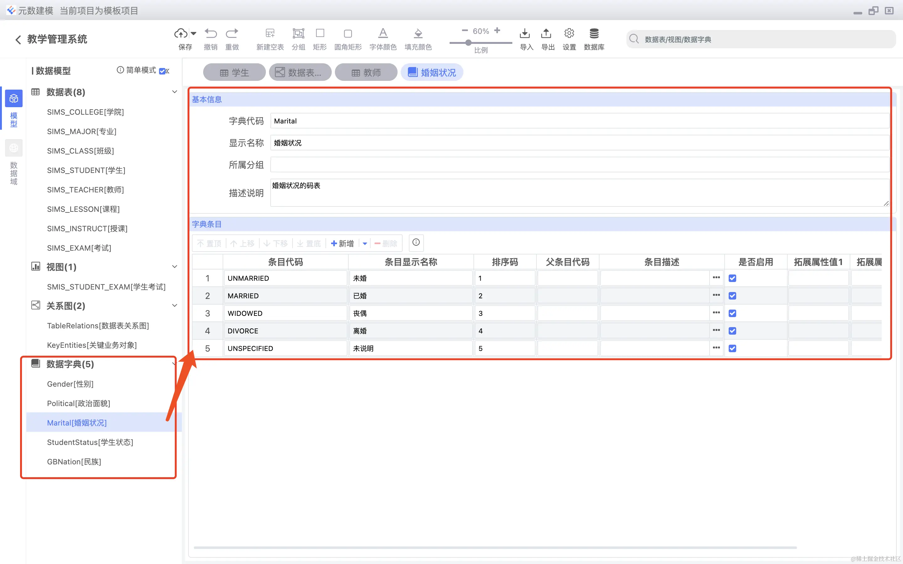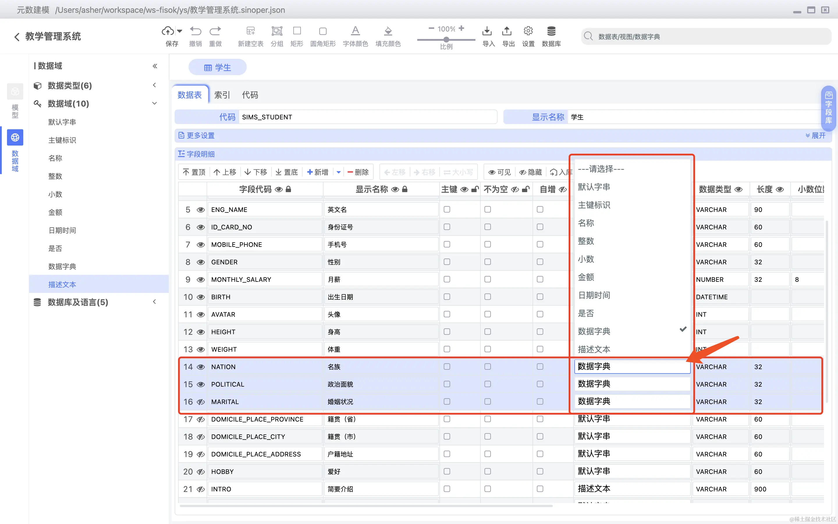 数据表字段可以直接关联数据字典,如下图所示: