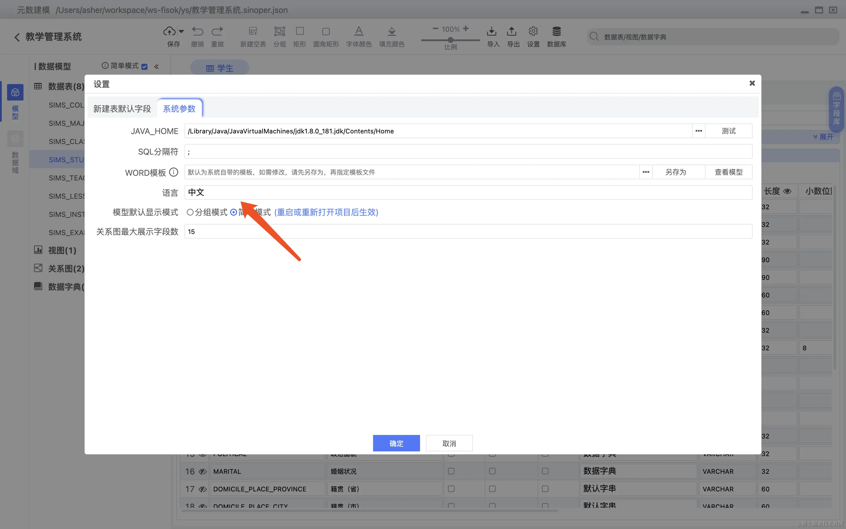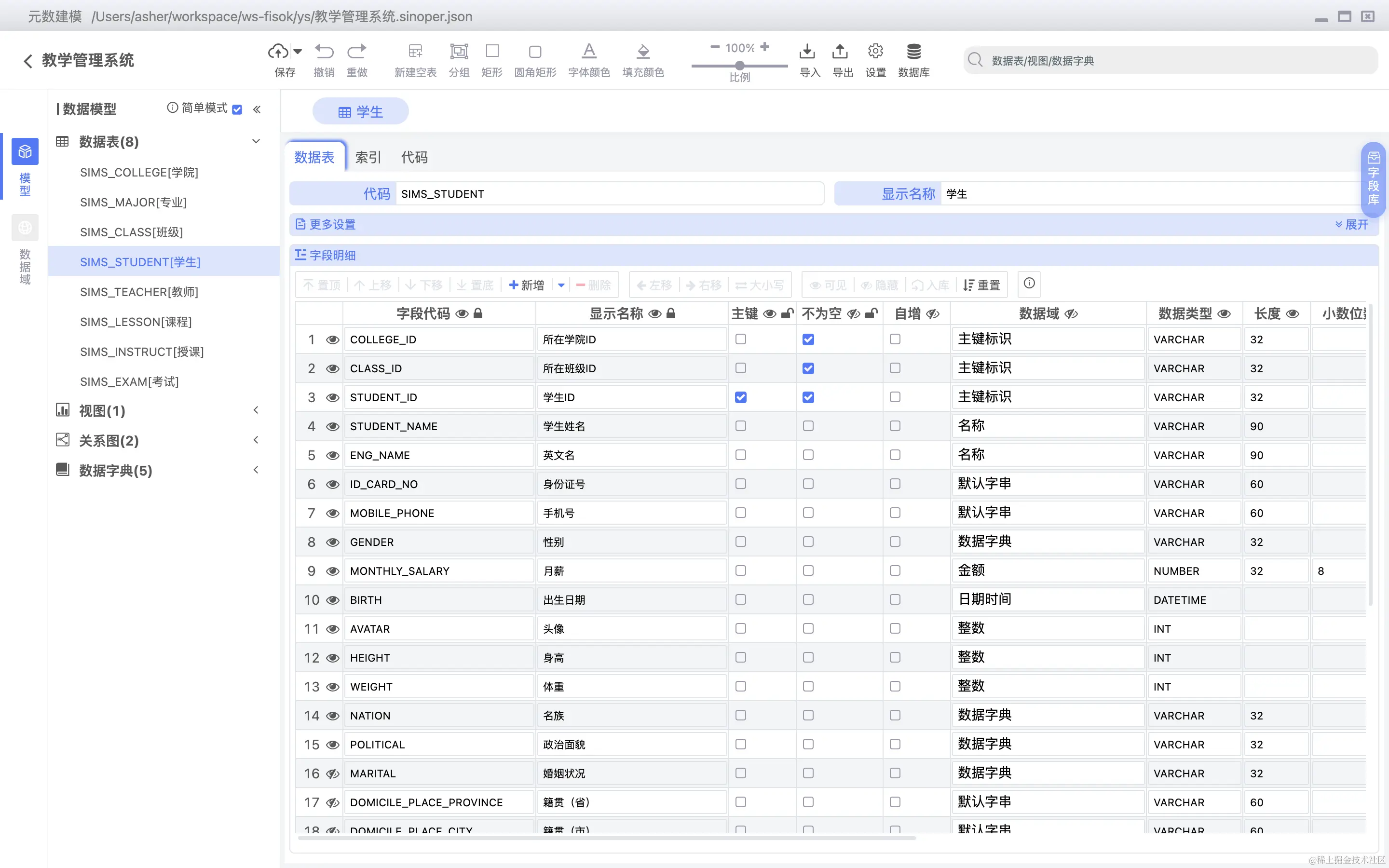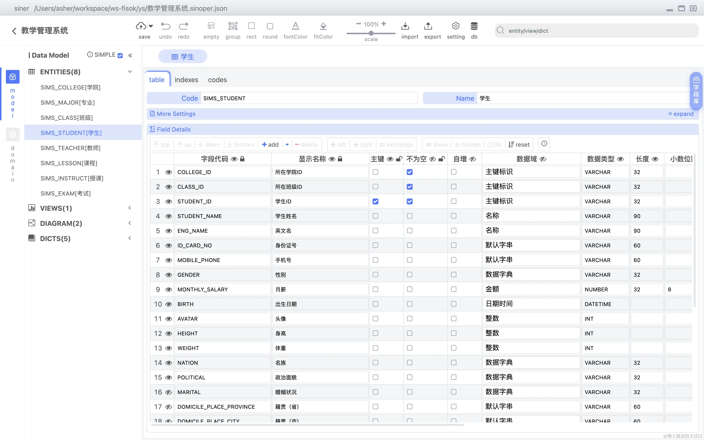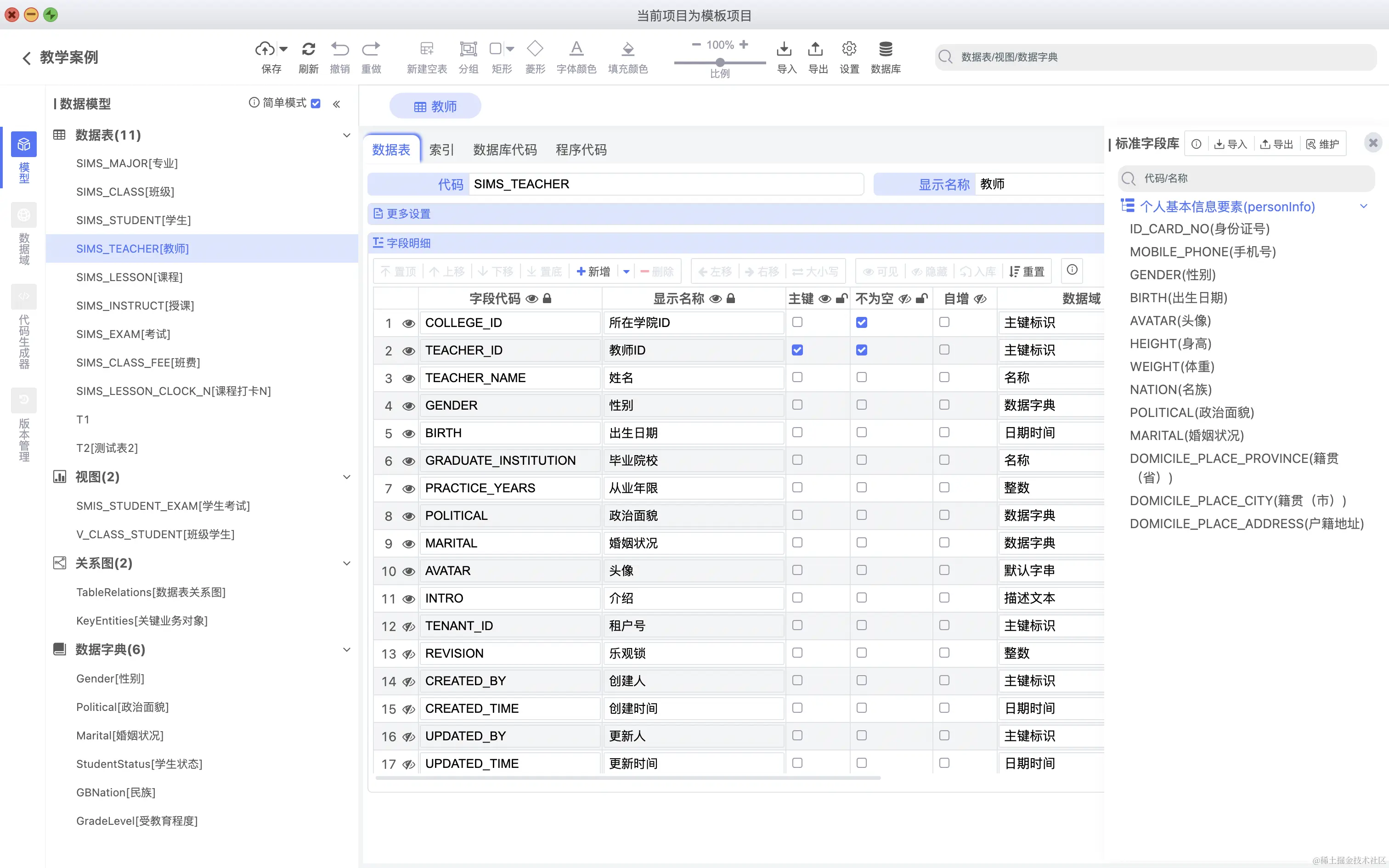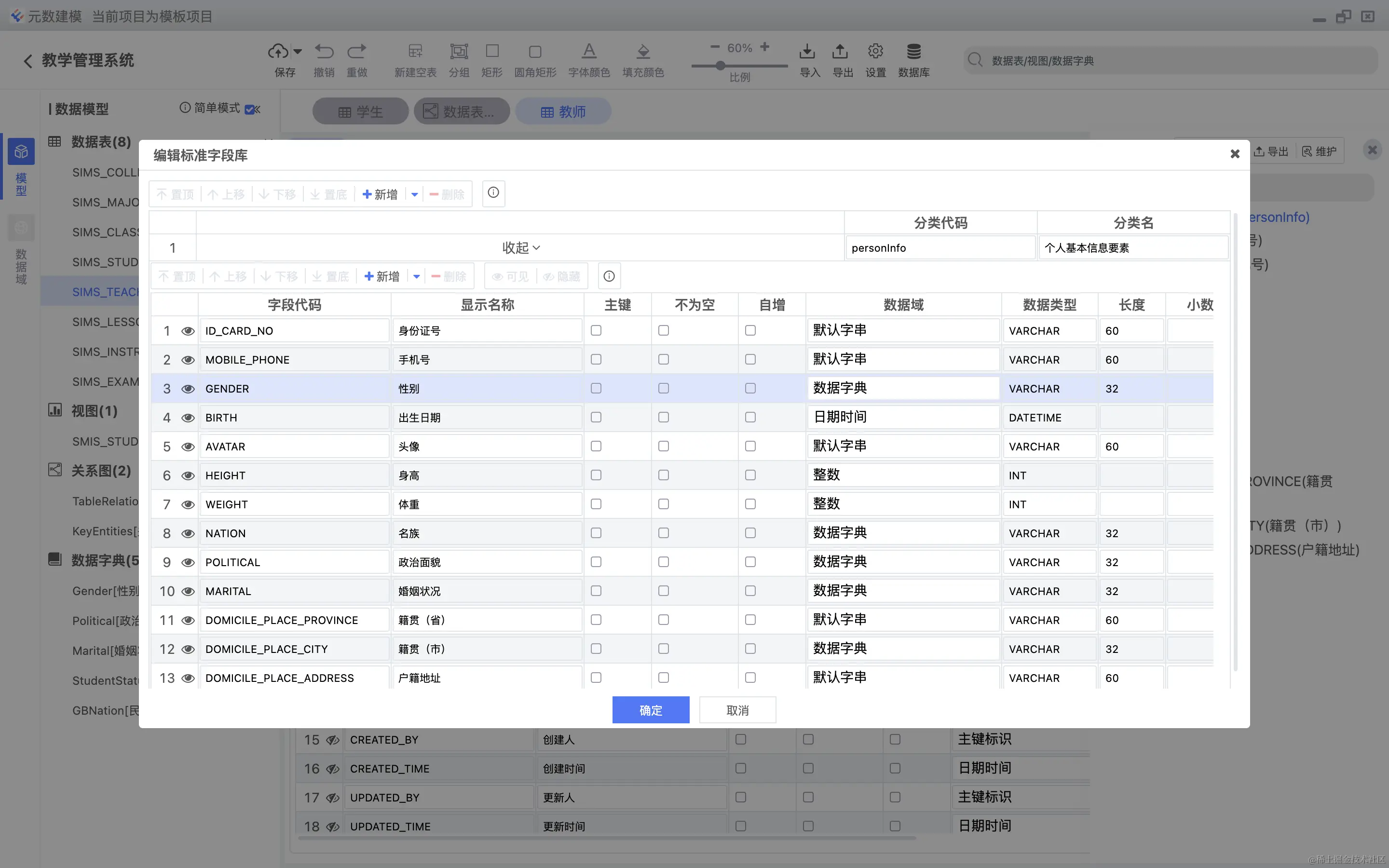 数据表字段可以直接关联数据字典,如下图所示: