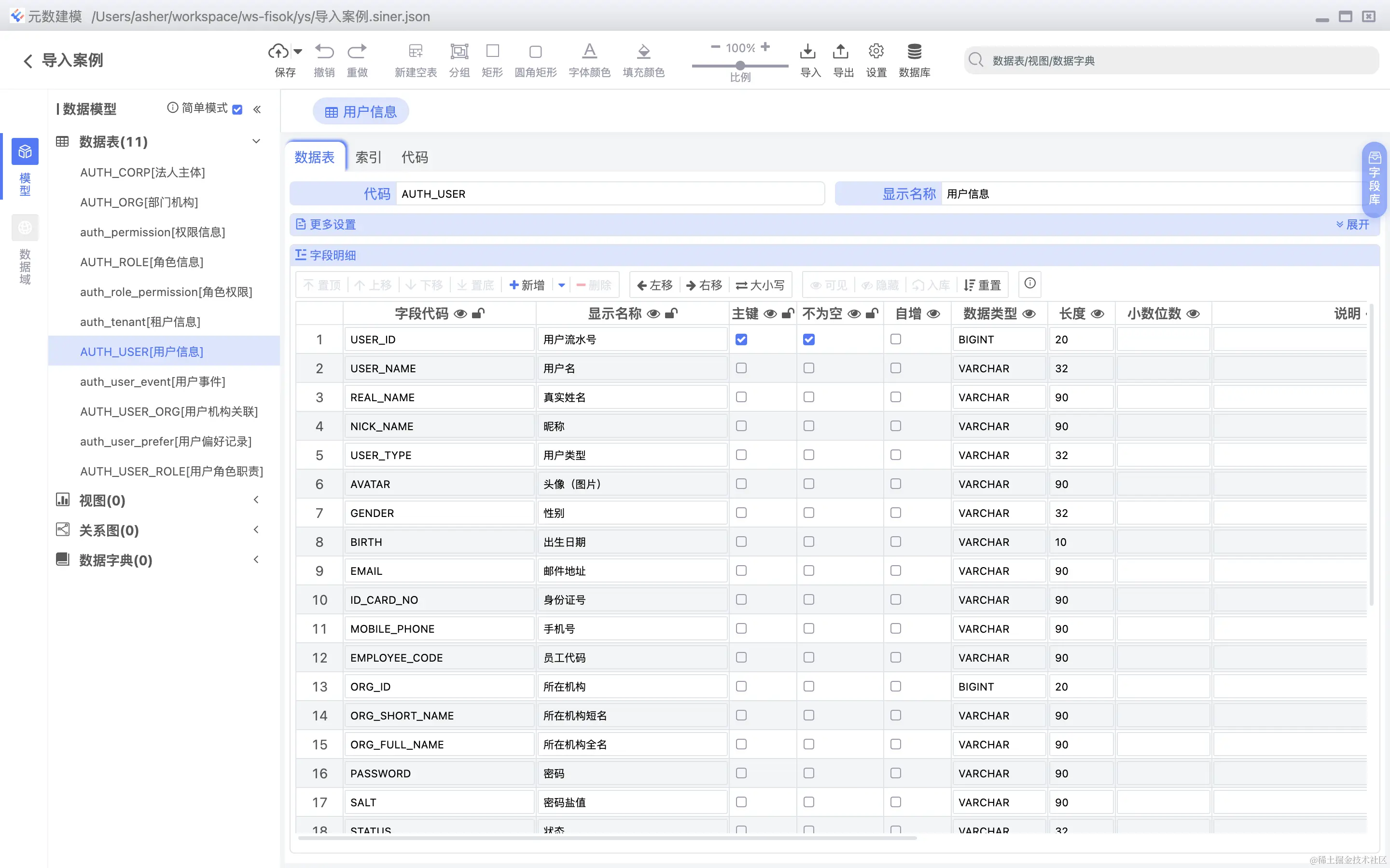 导入PowerDesigner,支持数据表,数据域的高度还原(不支持关系图还原),如下图: