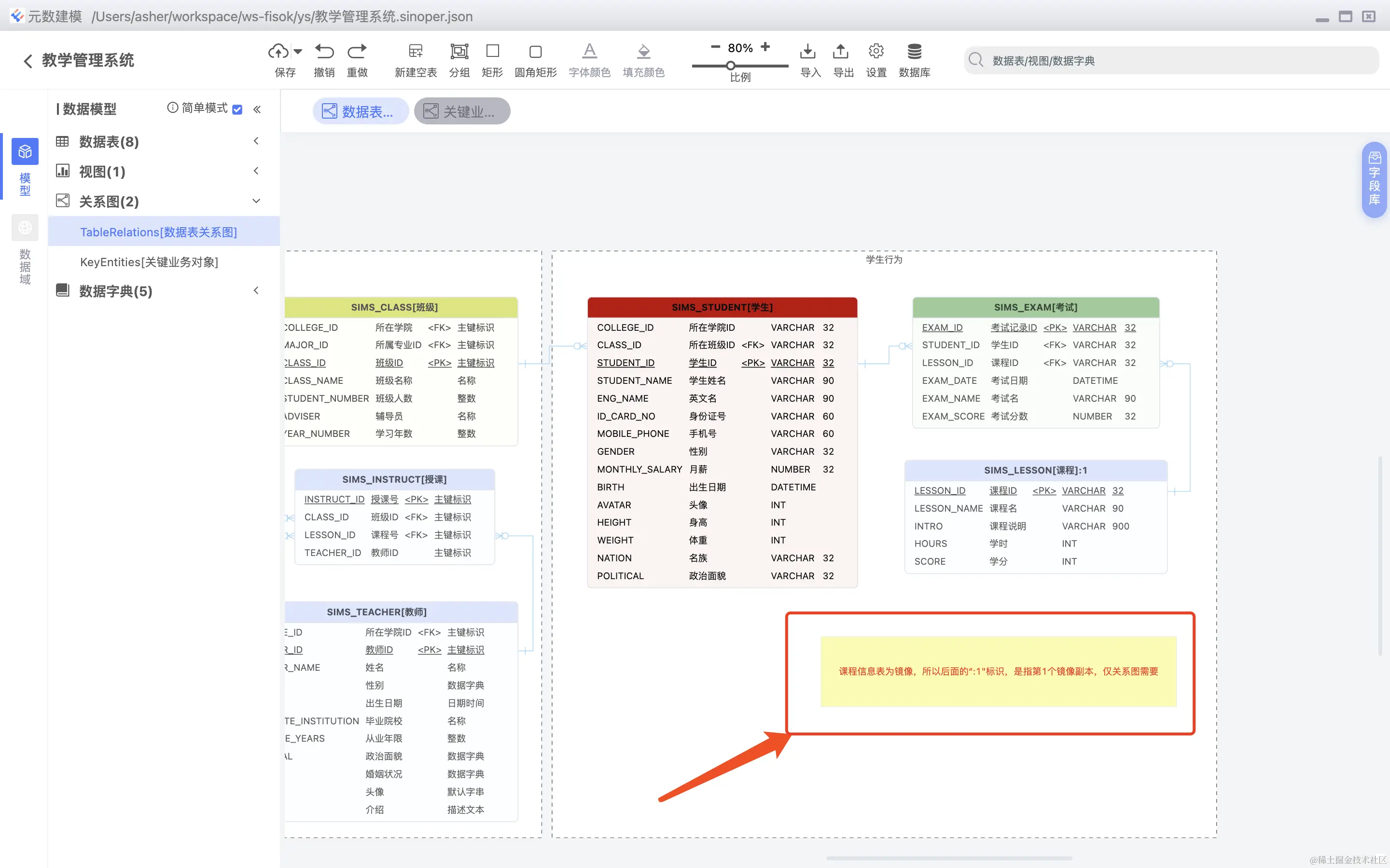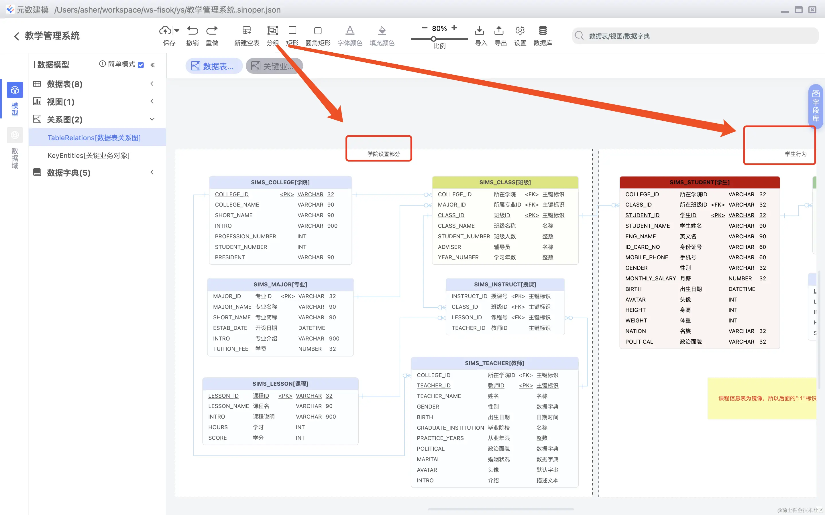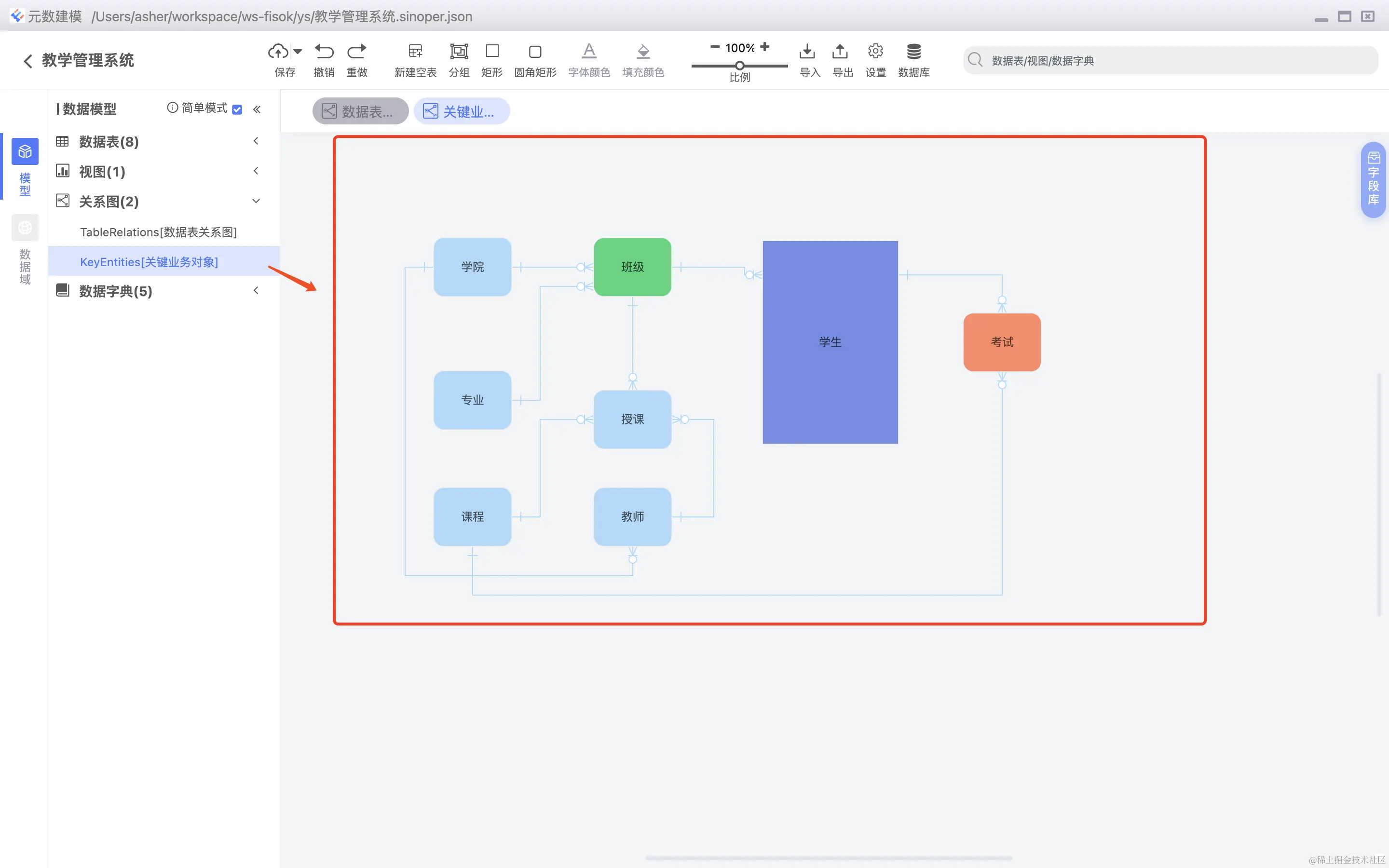 支持简单的概念模型图,概念模型图实体只保存在关系图上,不保持实体对象,如下图所示: