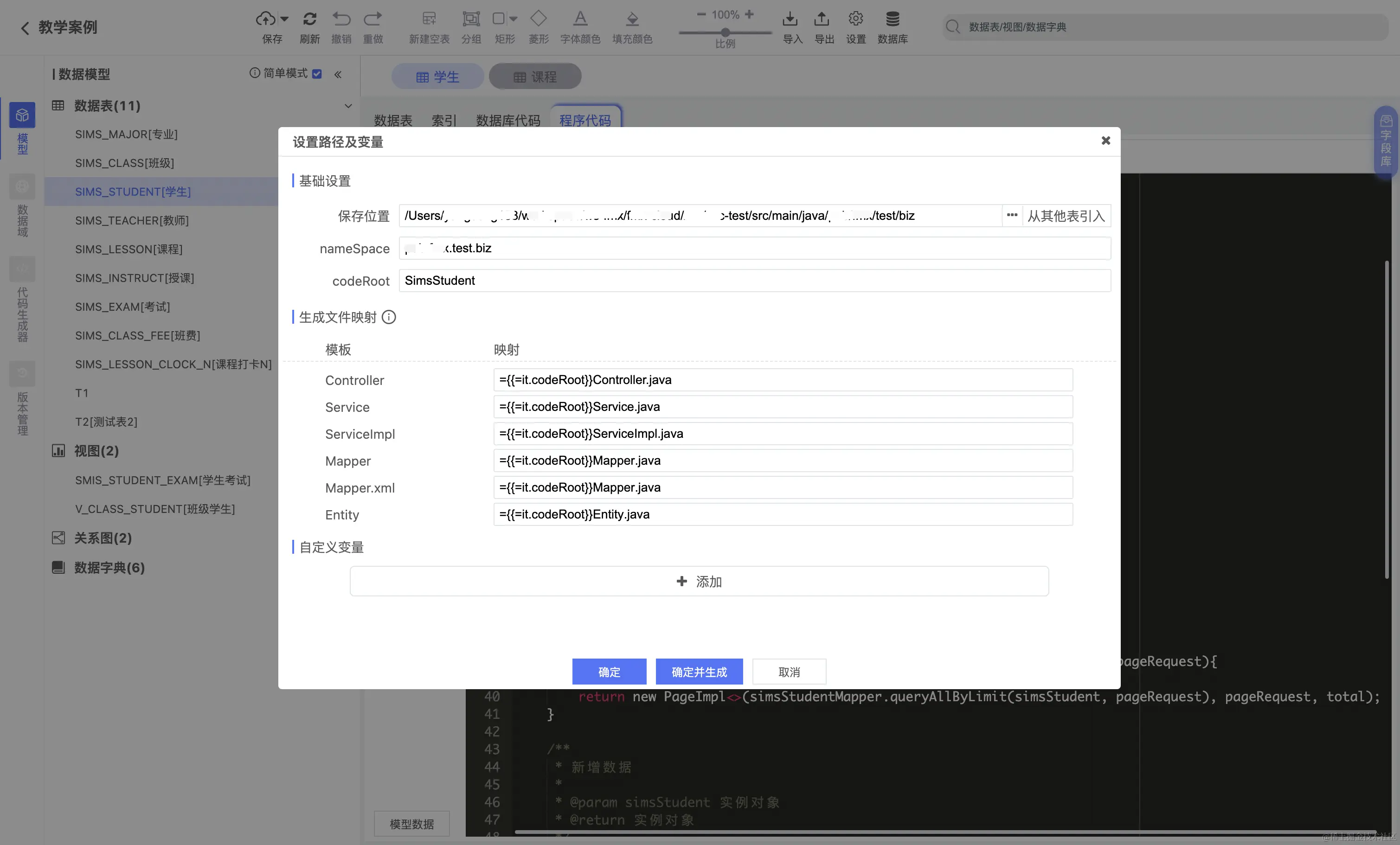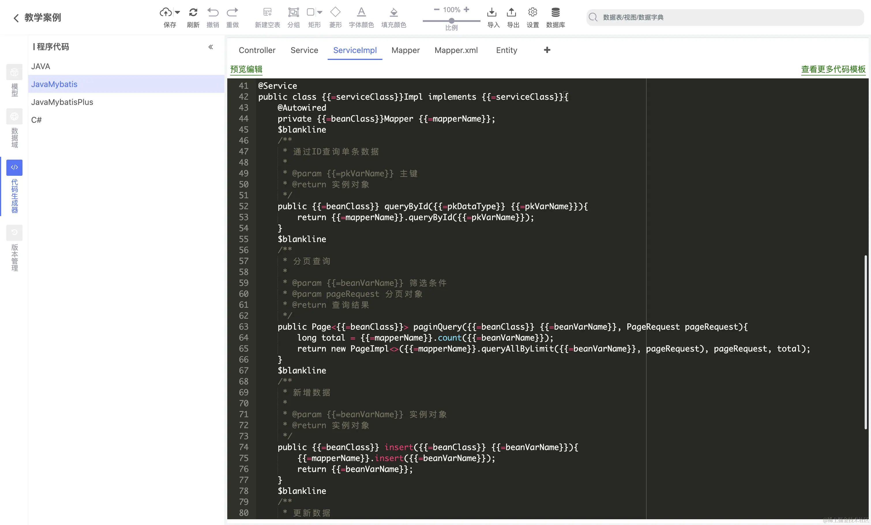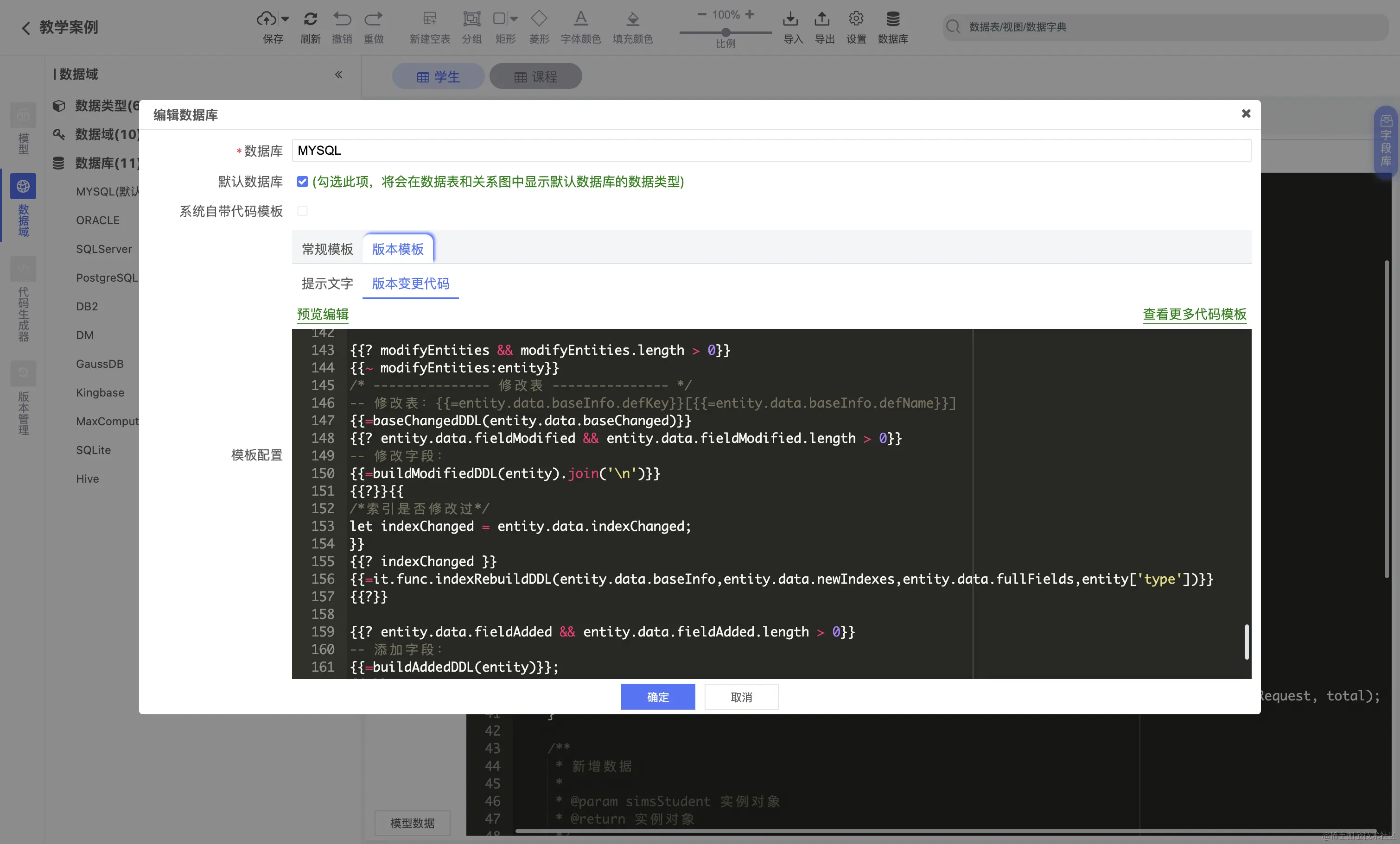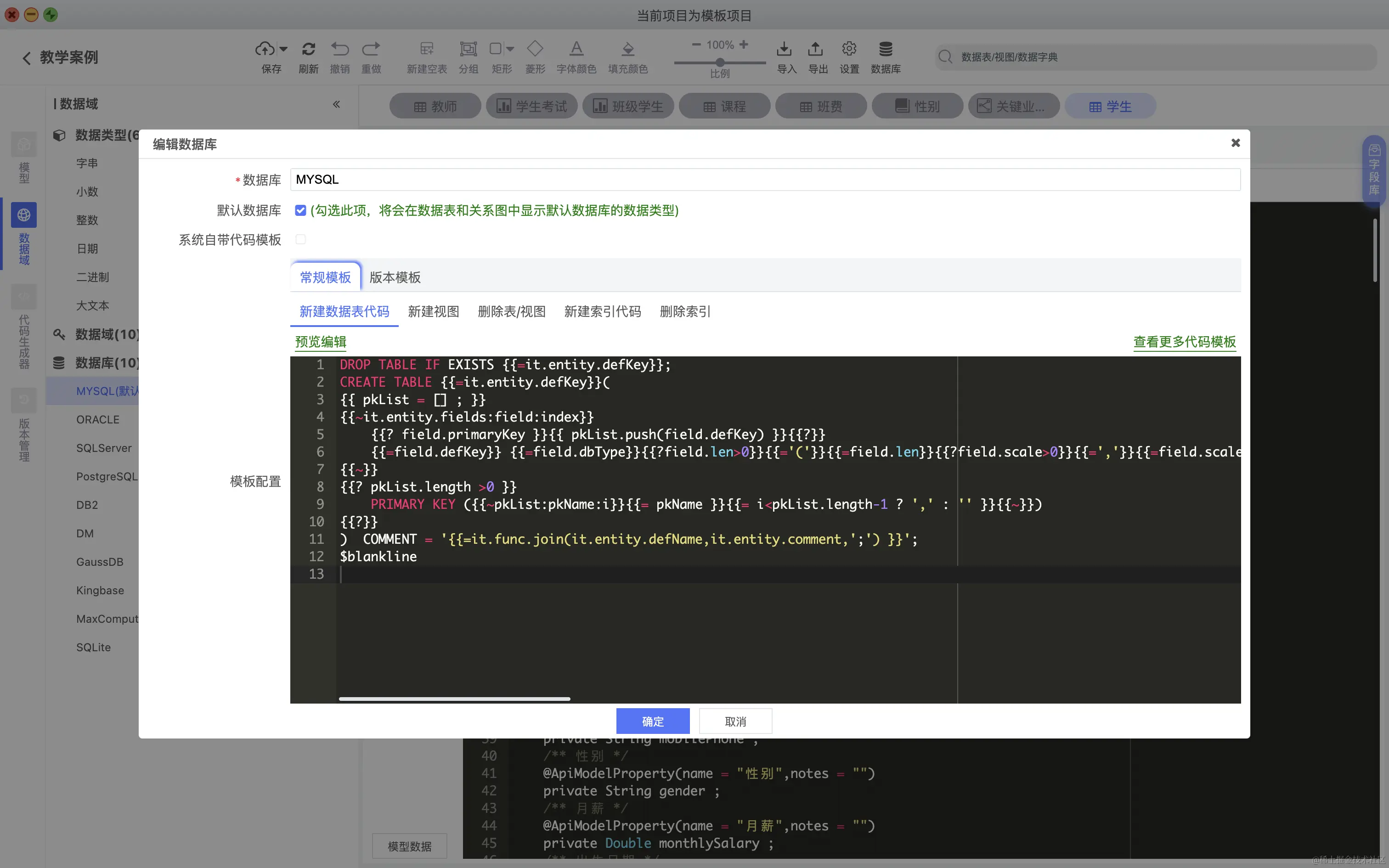 - 用户可以自行添加或者编辑新的数据库模板,添加新的代码生成器