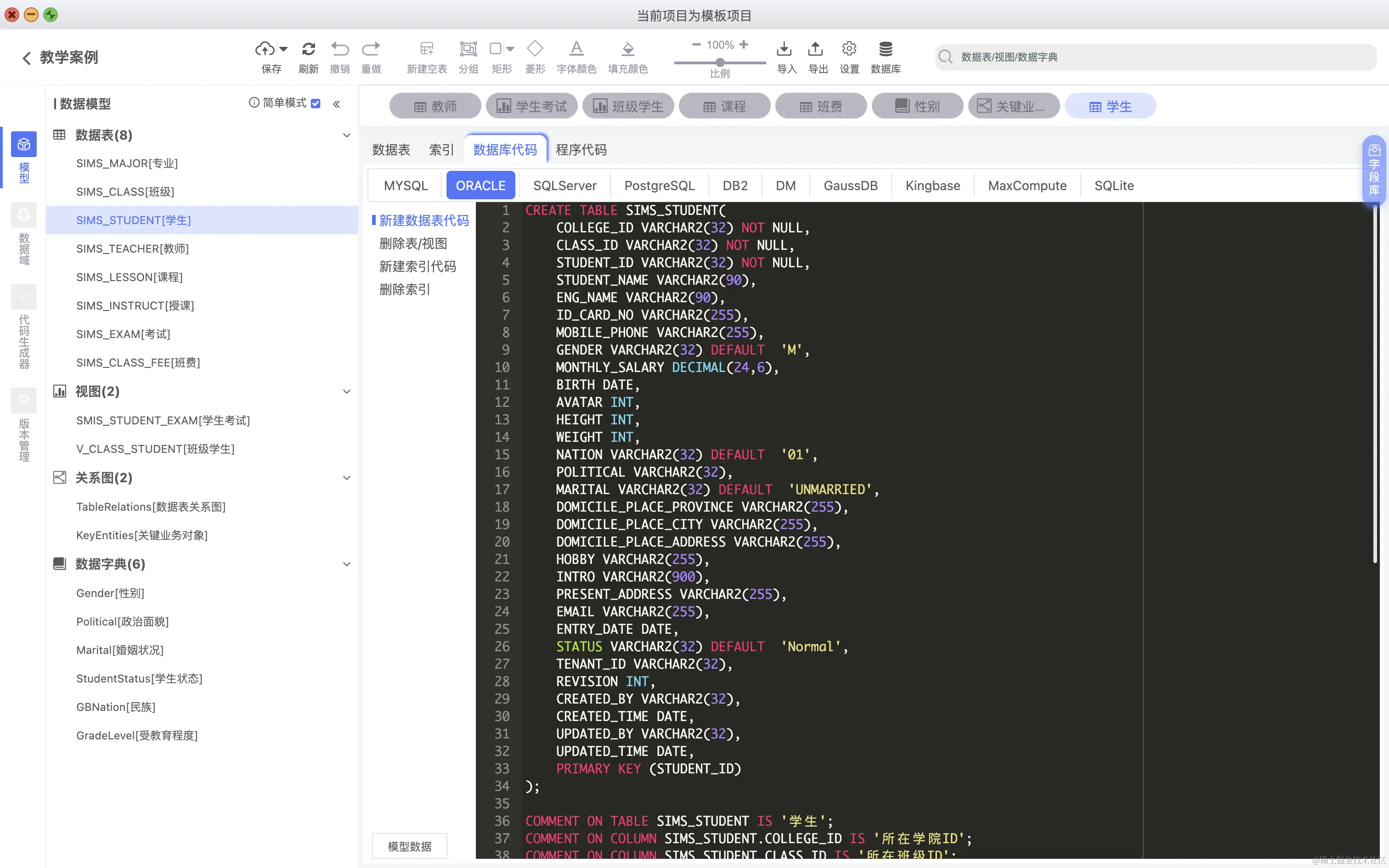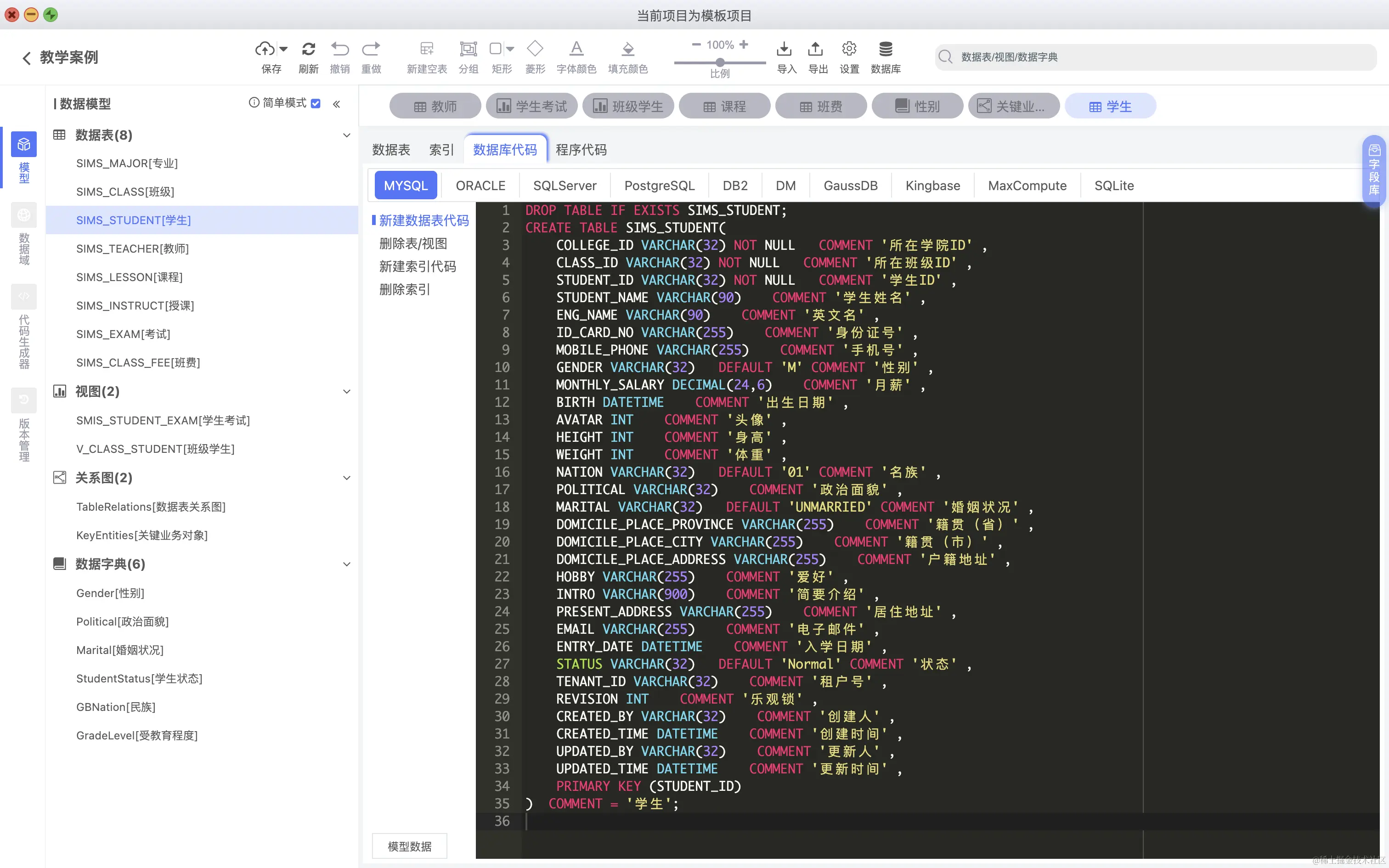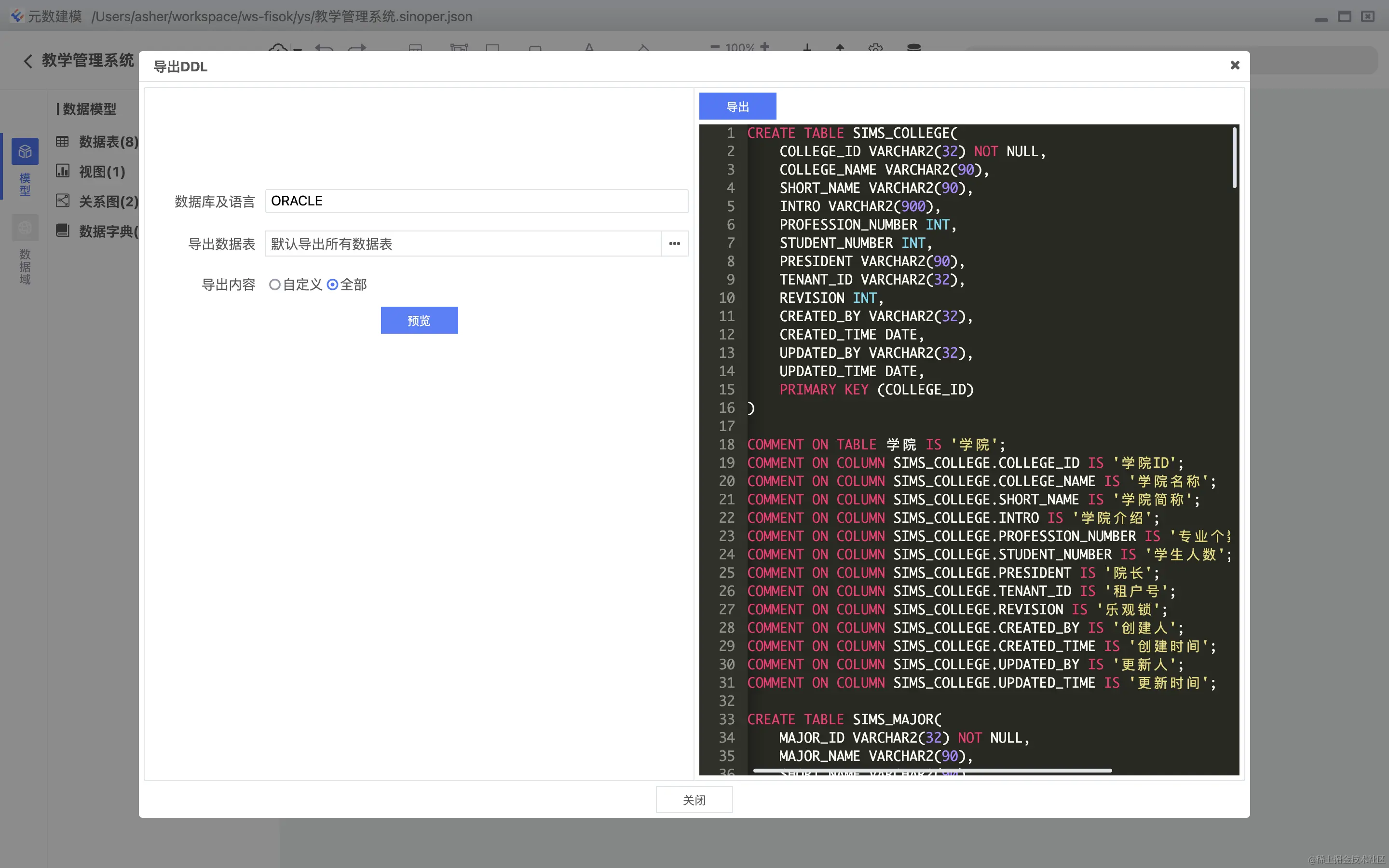 导出DDL,用于解决一次性导出指定数据表,针对指定数据库方言的导出,如下图: