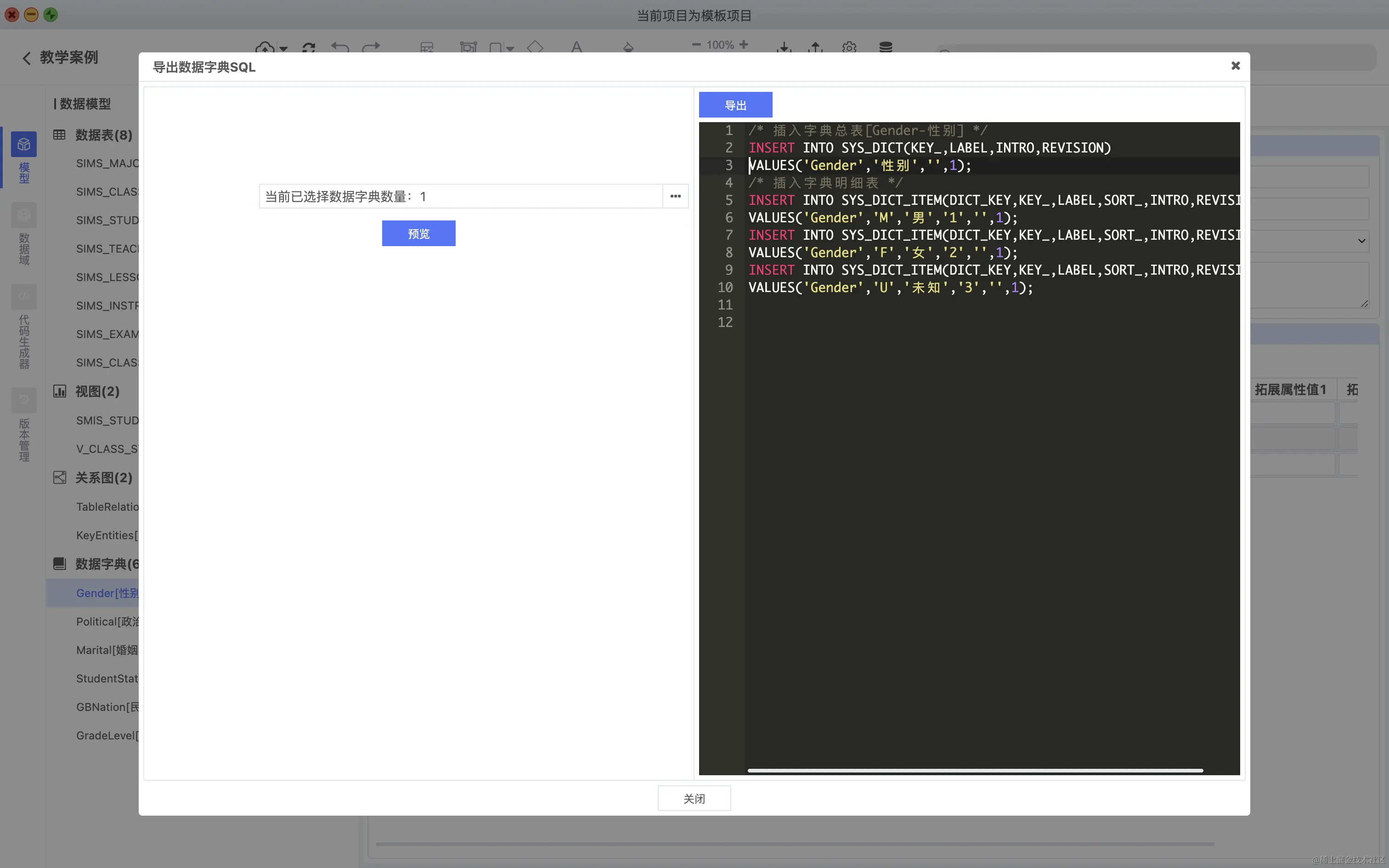 数据字典导出SQL,如下图所示:
