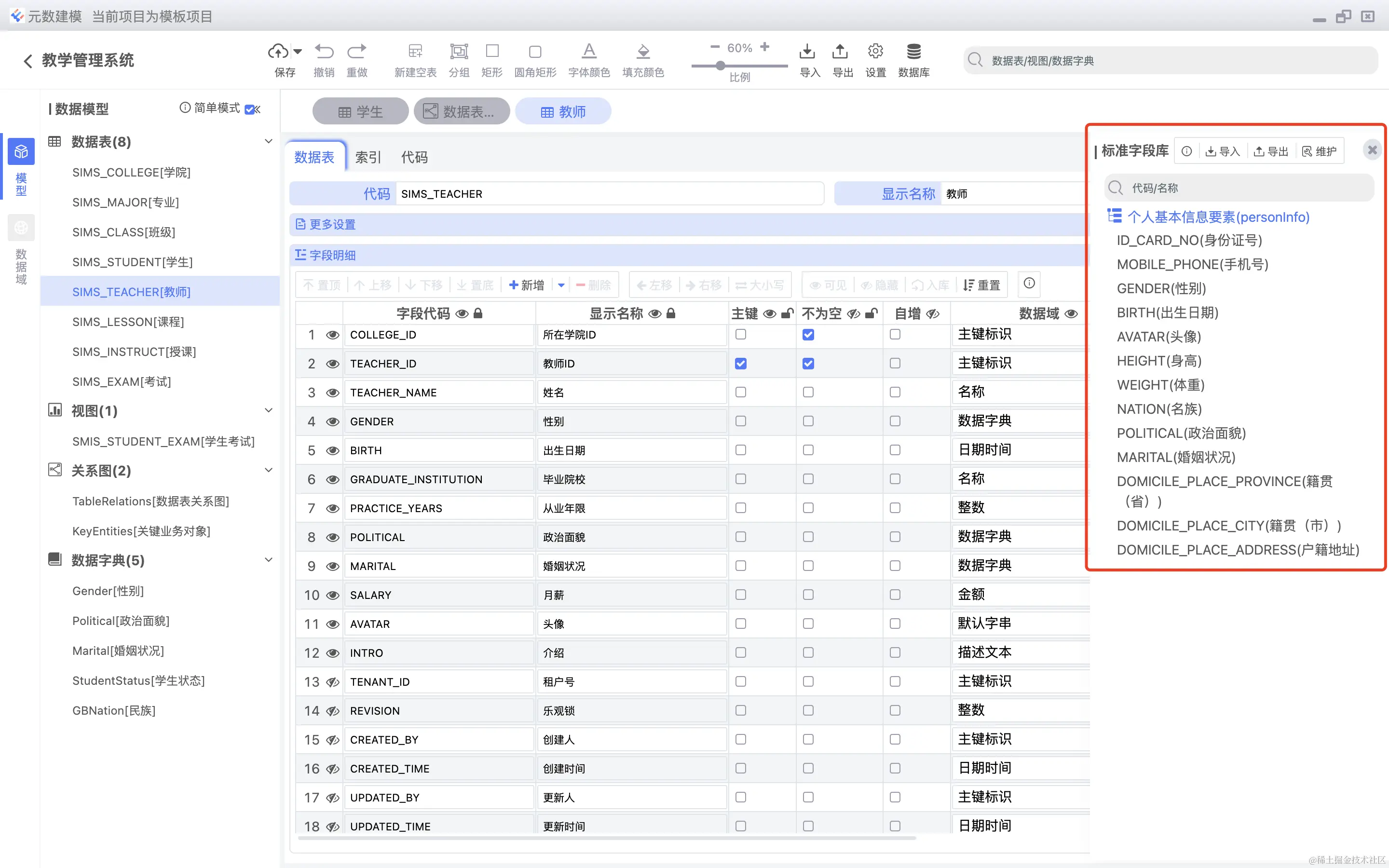 标准字段库可以用户自行添加,也可以从现有数据表中移到标准字段库中,如下图所示: