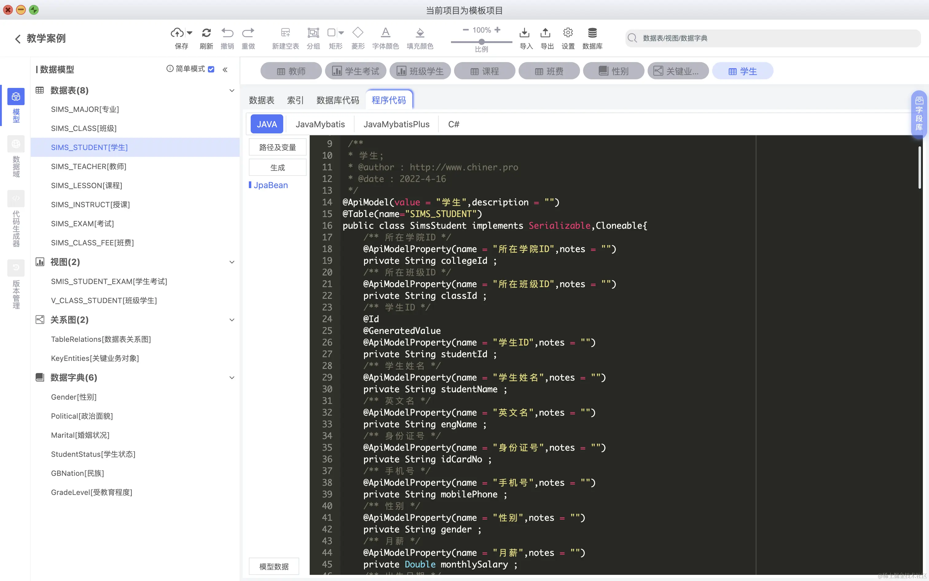 4.6.3 JavaBean代码生成