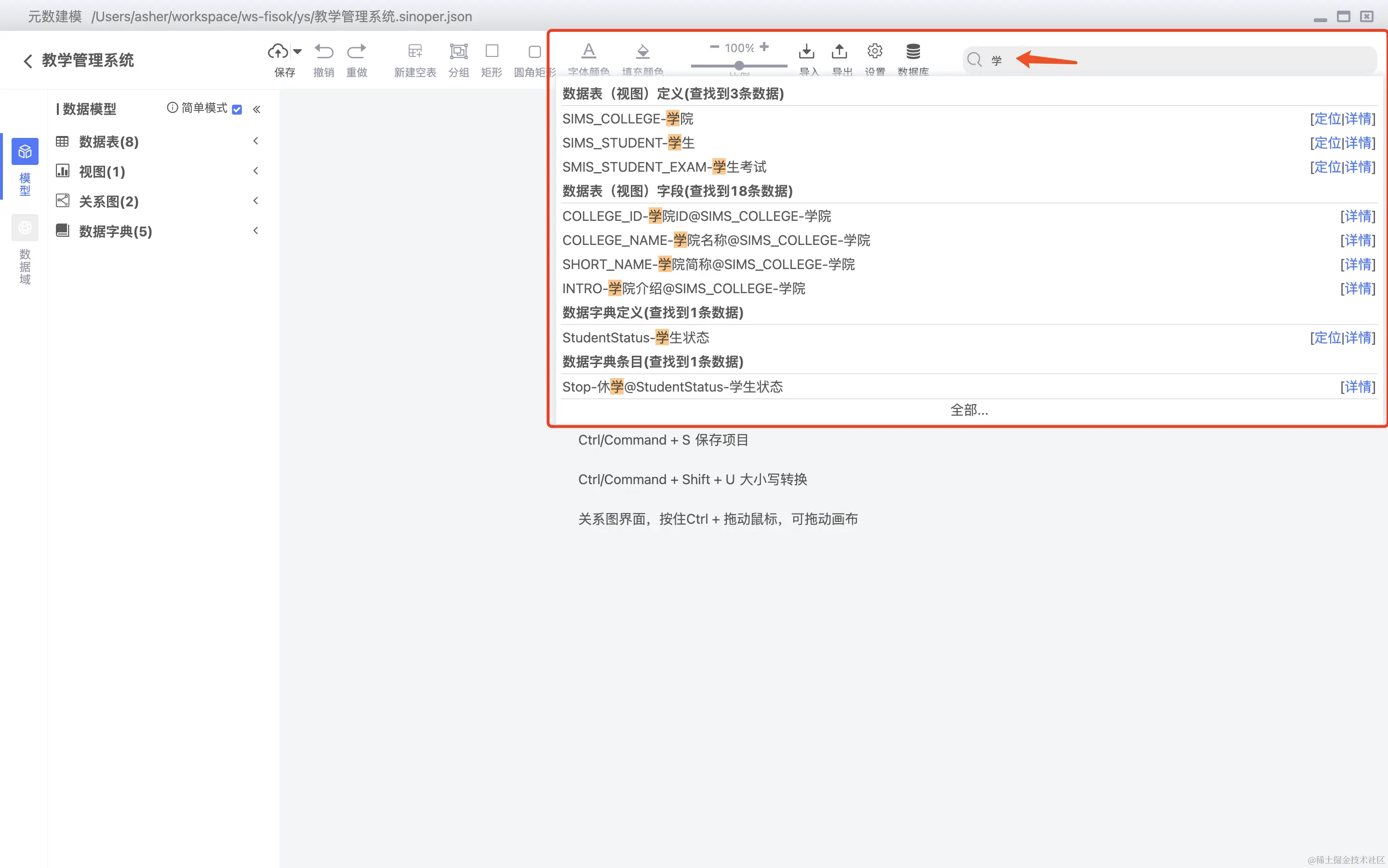 字段及关键字,数据字典等的全局搜索,如下图: